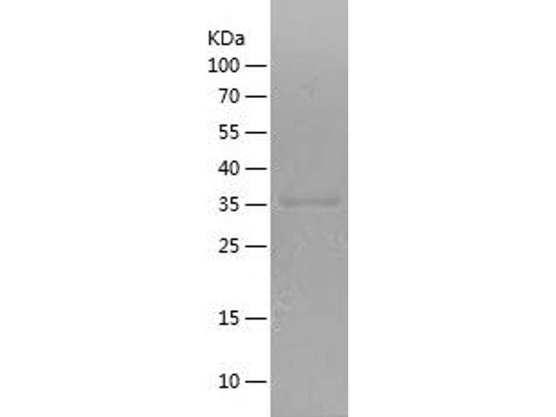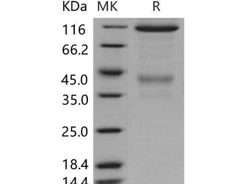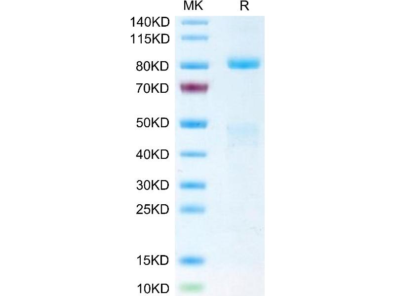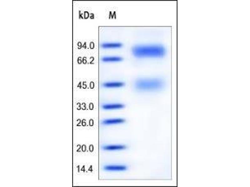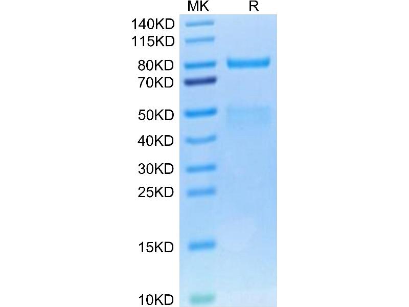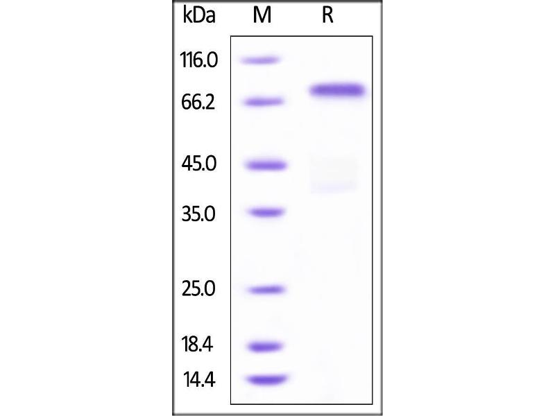 The purity of the protein is greater than 95 % as determined by SDS-PAGE and Coomassie blue staining.