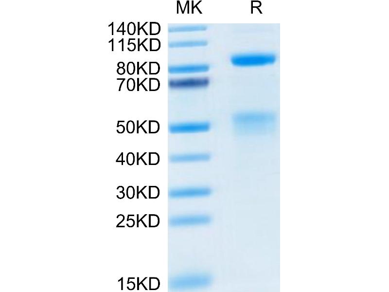 The purity of the protein is greater than 85 % as determined by SDS-PAGE and Coomassie blue staining.