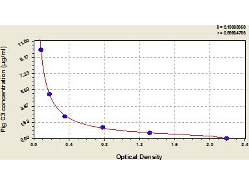 C3 Reactivity: Pig Colorimetric Competition ELISA 0.625 μg/mL - 10 μg/mL Plasma, Serum, Tissue Homogenate