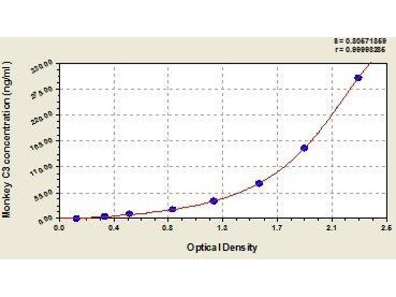 C3 Reactivity: Monkey Colorimetric Sandwich ELISA 4.68-300 ng/mL Cell Culture Supernatant, Plasma, Serum
