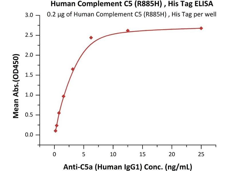 The protein encoded by this gene is the fifth component of complement, which plays an important role in inflammatory and cell killing processes. This protein is comprised of alpha and beta polypeptide chains that are linked by a disulfide bridge. An activation peptide, C5a, which is an anaphylatoxin that possesses potent spasmogenic and chemotactic activity, is derived from the alpha polypeptide via cleavage with a convertase. The C5b macromolecular cleavage product can form a complex with the C6 complement component, and this complex is the basis for formation of the membrane attack complex, which includes additional complement components. Mutations in this gene cause complement component 5 deficiency, a disease where patients show a propensity for severe recurrent infections. Defects in this gene have also been linked to a susceptibility to liver fibrosis and to rheumatoid arthritis. [provided by RefSeq, Jul 2008].