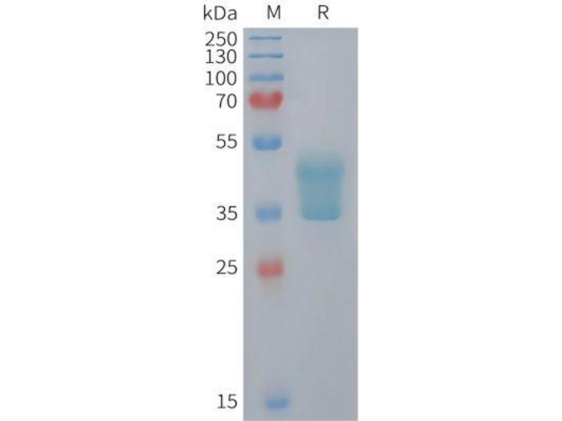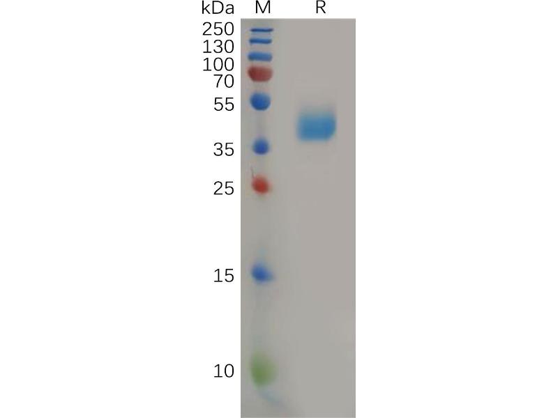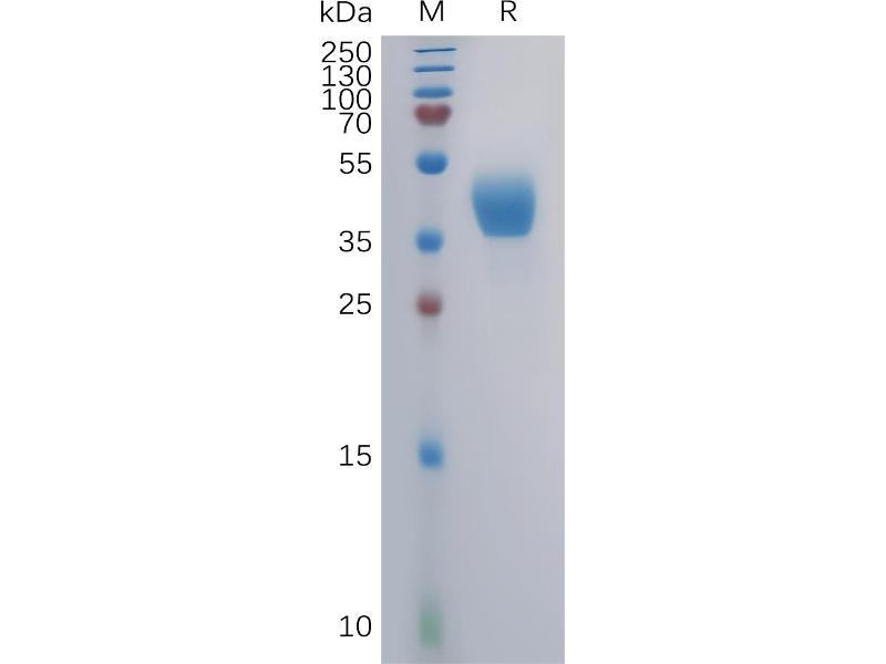 The purity of the protein is greater than 95 % as determined by SDS-PAGE and Coomassie blue staining.
