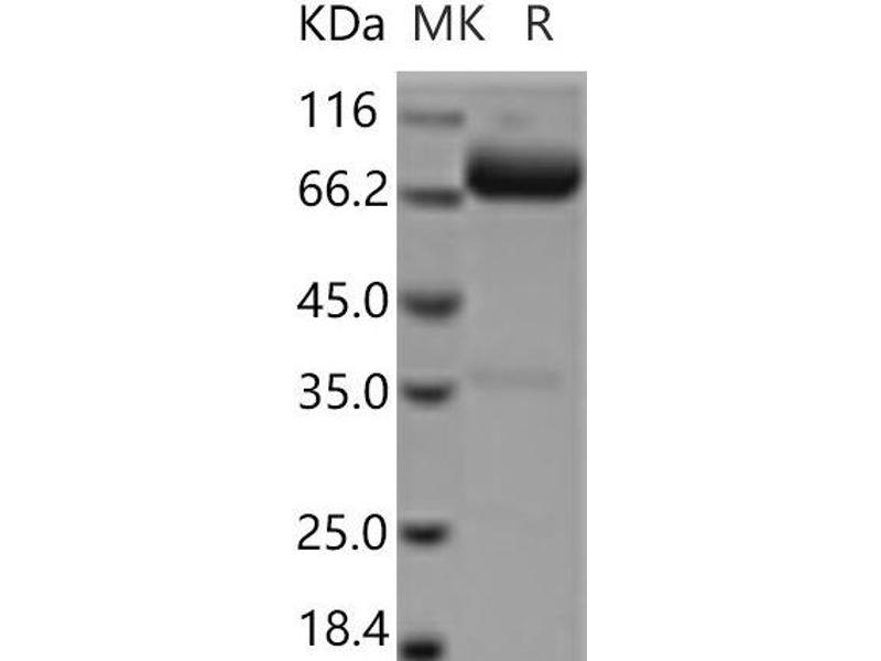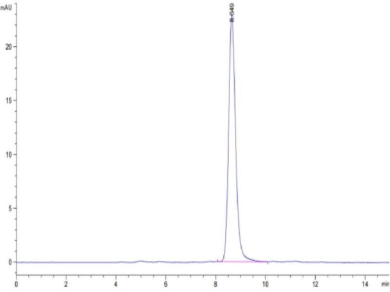 The purity of the protein is greater than 85 % as determined by SDS-PAGE and Coomassie blue staining.