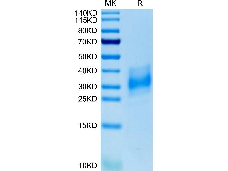 The purity of the protein is greater than 95 % as determined by SDS-PAGE and Coomassie blue staining.