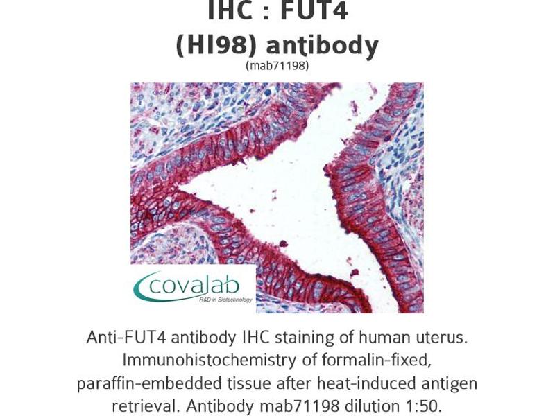 FUT4 Reactivity: Human, Monkey FACS, IHC (p), IHC (fro) Host: Mouse Monoclonal HI98 unconjugated