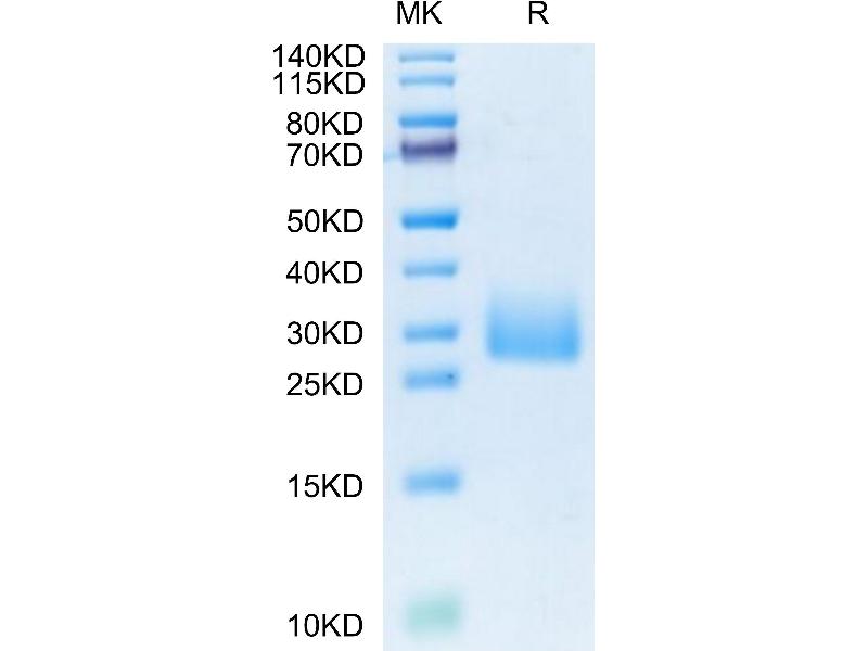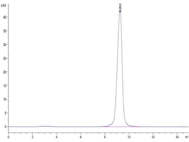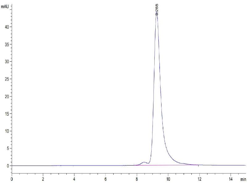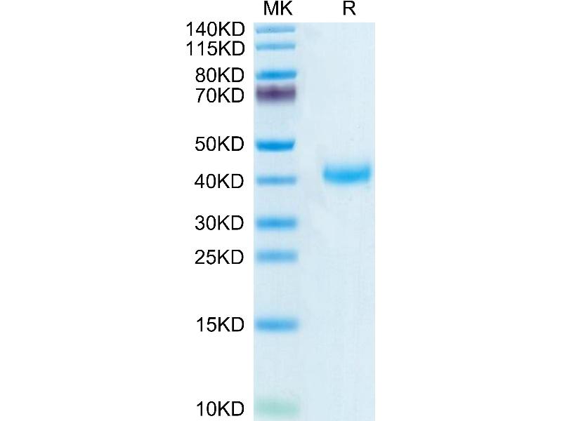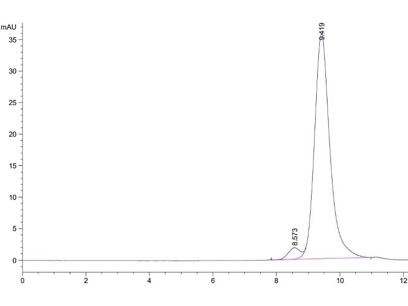 The purity of the protein is greater than 95 % as determined by SDS-PAGE and Coomassie blue staining.
