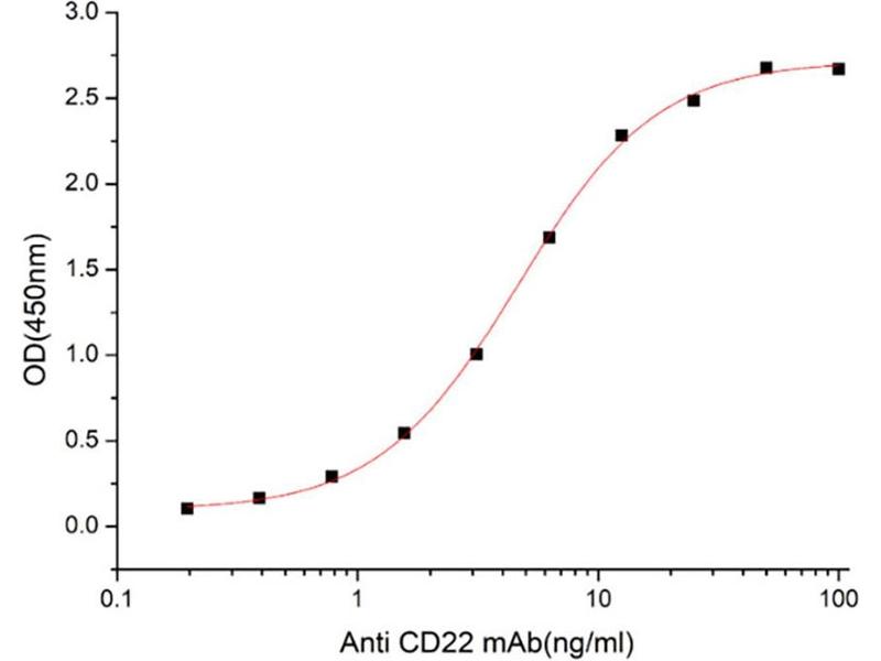 Mediates B-cell B-cell interactions. May be involved in the localization of B-cells in lymphoid tissues. Binds sialylated glycoproteins\; one of which is CD45. Preferentially binds to alpha-2,6-linked sialic acid. The sialic acid recognition site can be masked by cis interactions with sialic acids on the same cell surface. Upon ligand induced tyrosine phosphorylation in the immune response seems to be involved in regulation of B-cell antigen receptor signaling. Plays a role in positive regulation through interaction with Src family tyrosine kinases and may also act as an inhibitory receptor by recruiting cytoplasmic phosphatases via their SH2 domains that block signal transduction through dephosphorylation of signaling molecules.