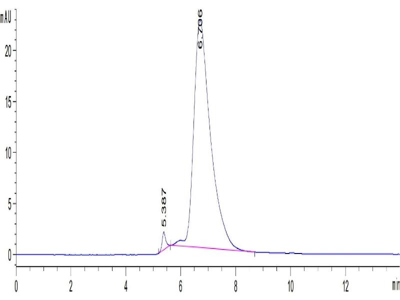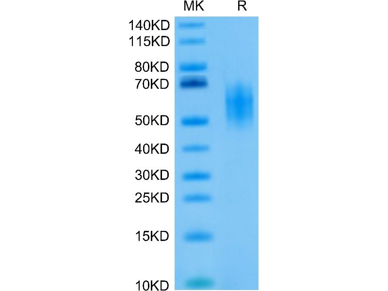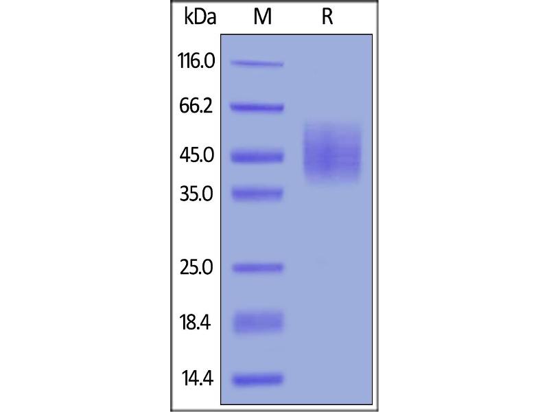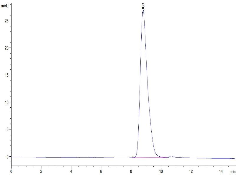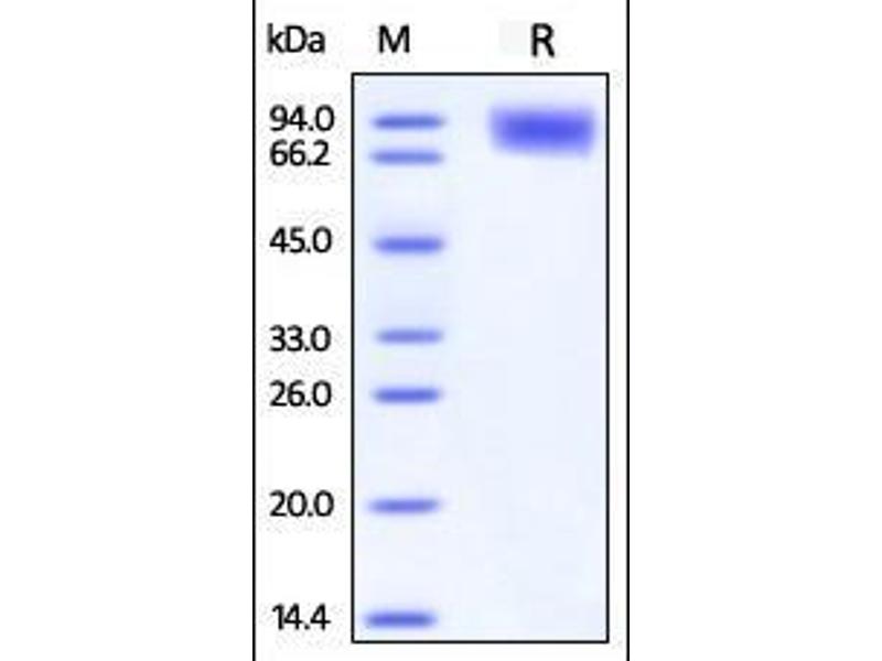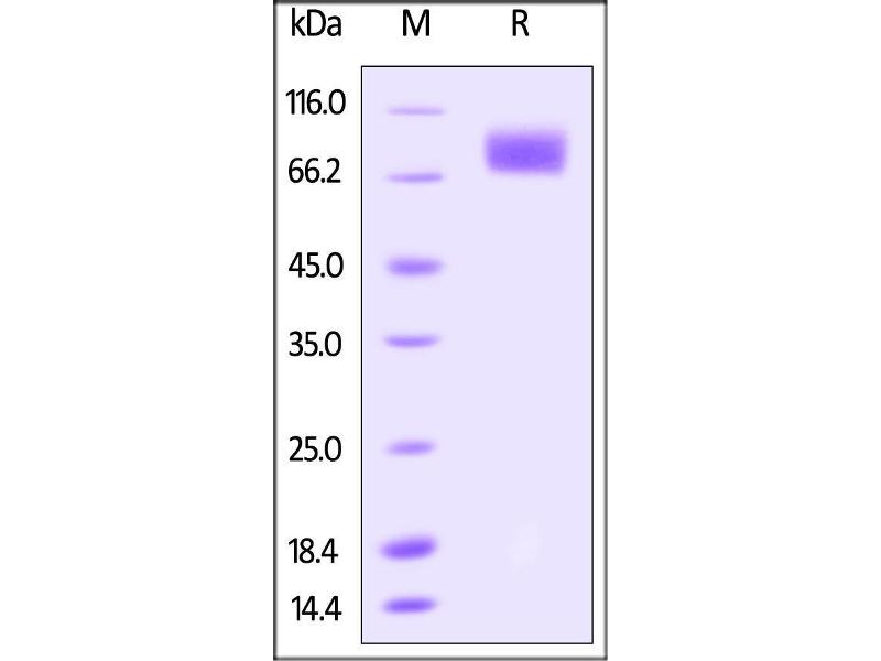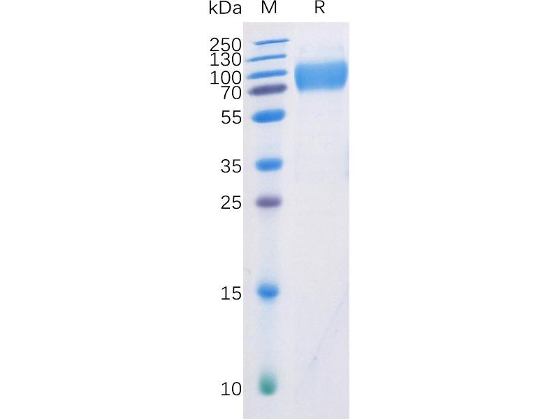 The purity of the protein is greater than 95 % as determined by SDS-PAGE and Coomassie blue staining.