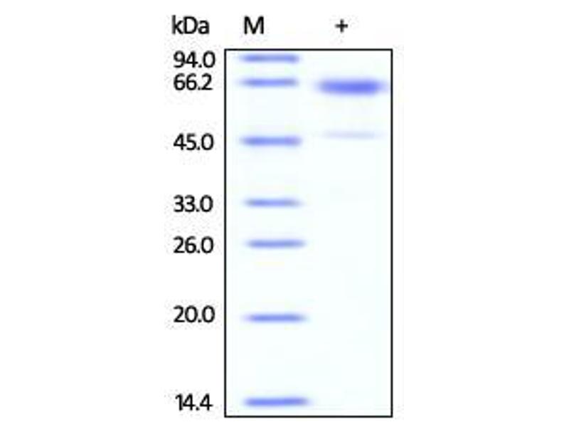 The purity of the protein is greater than 95 % as determined by SDS-PAGE and Coomassie blue staining.