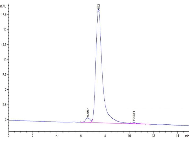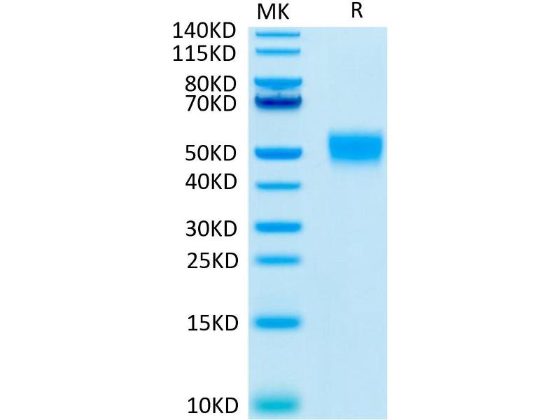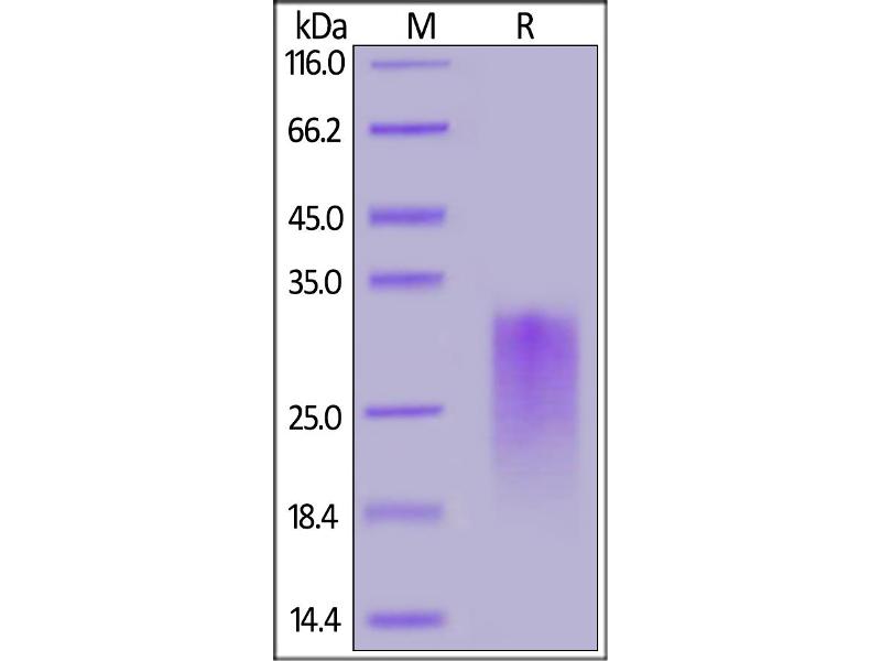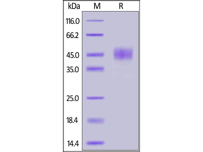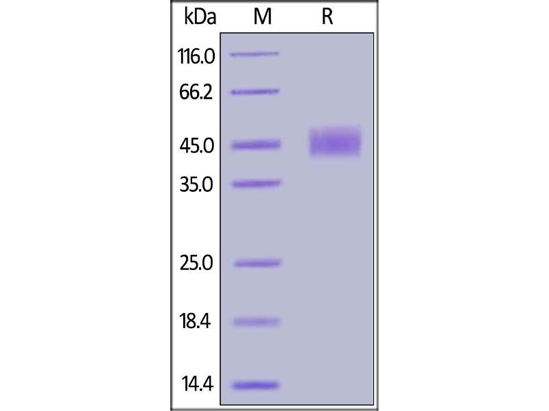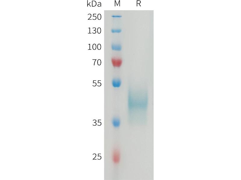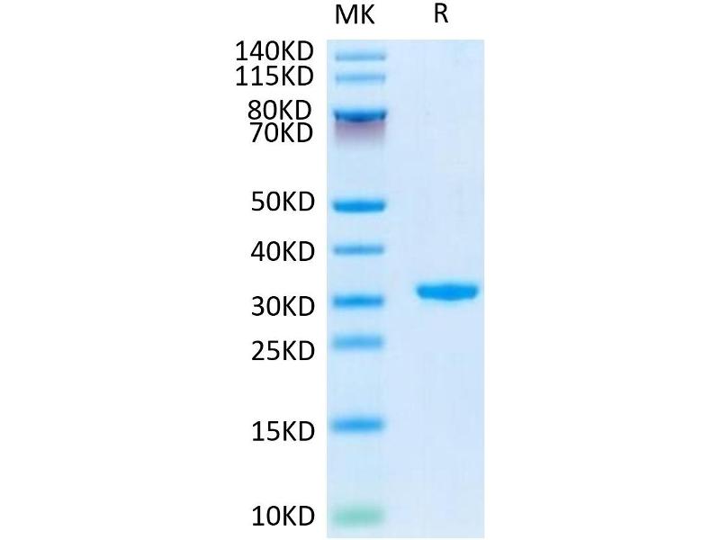 The purity of the protein is greater than 95 % as determined by SDS-PAGE and Coomassie blue staining.