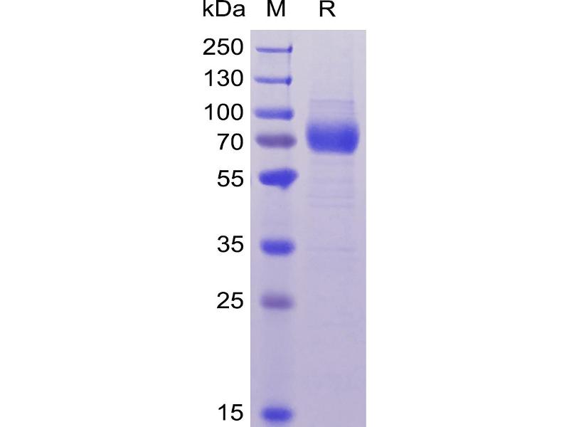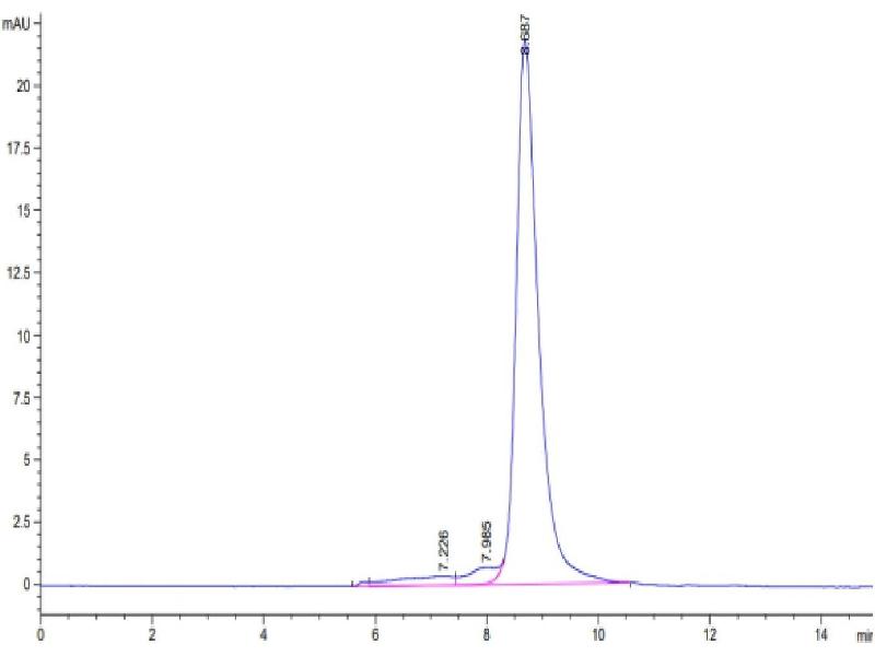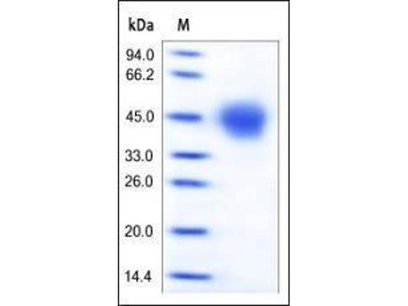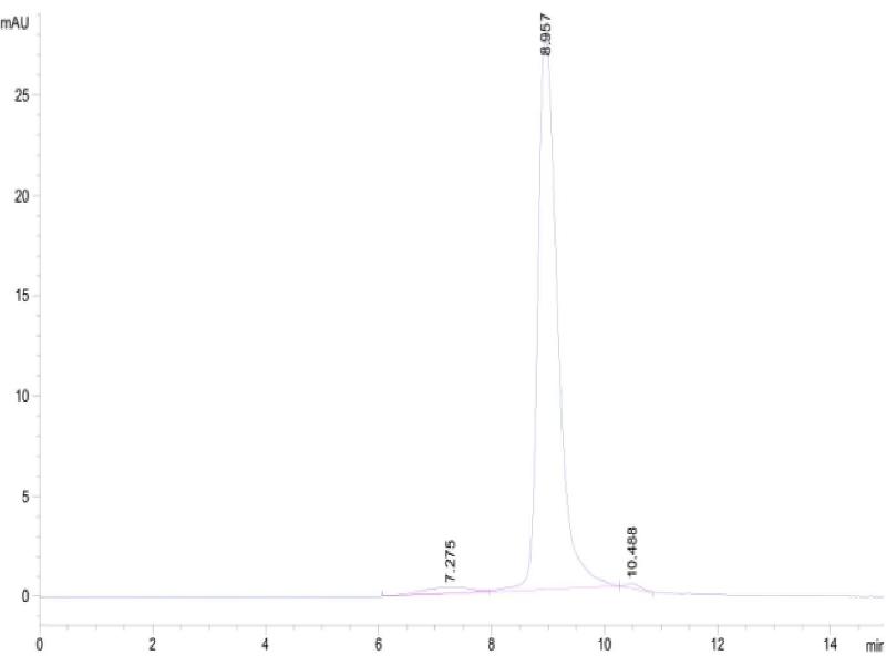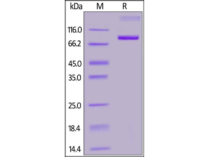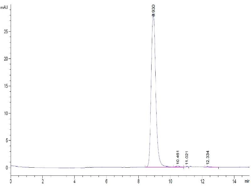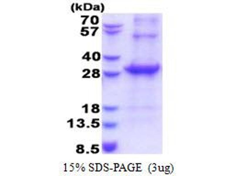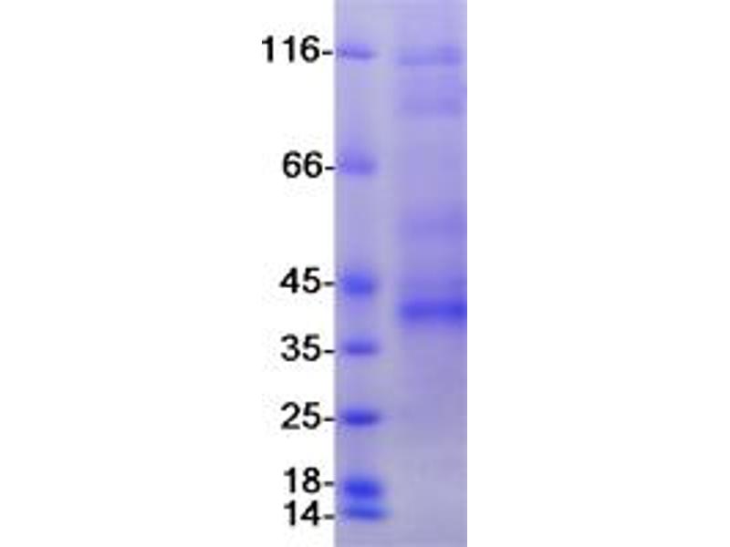 The purity of the protein is greater than 95 % as determined by SDS-PAGE and Coomassie blue staining.