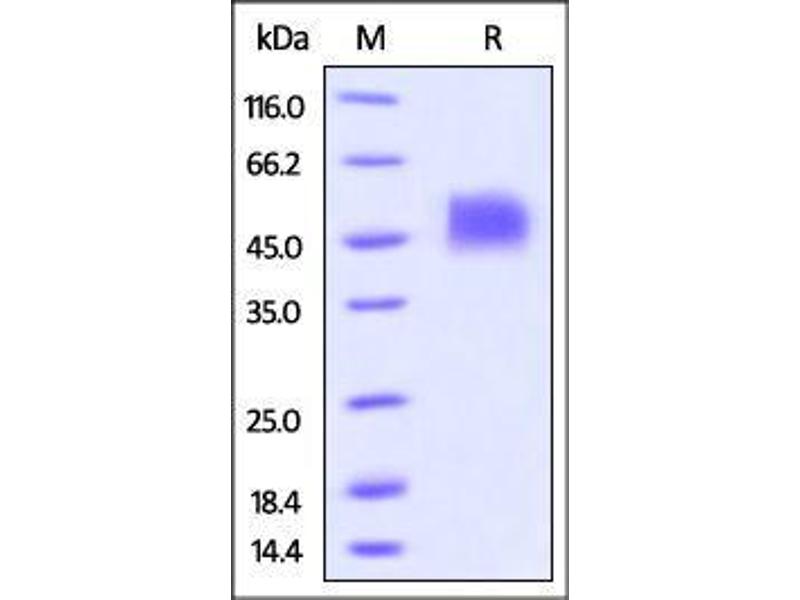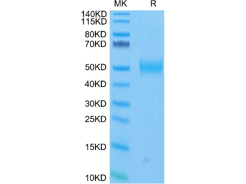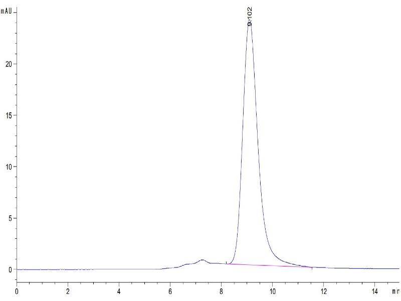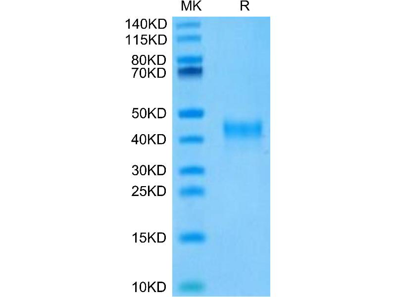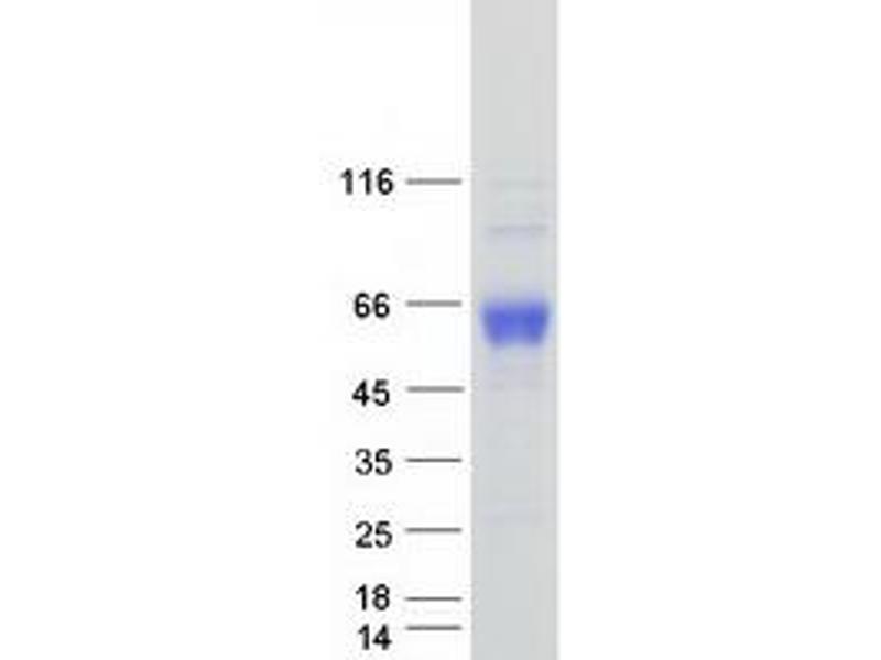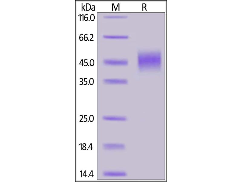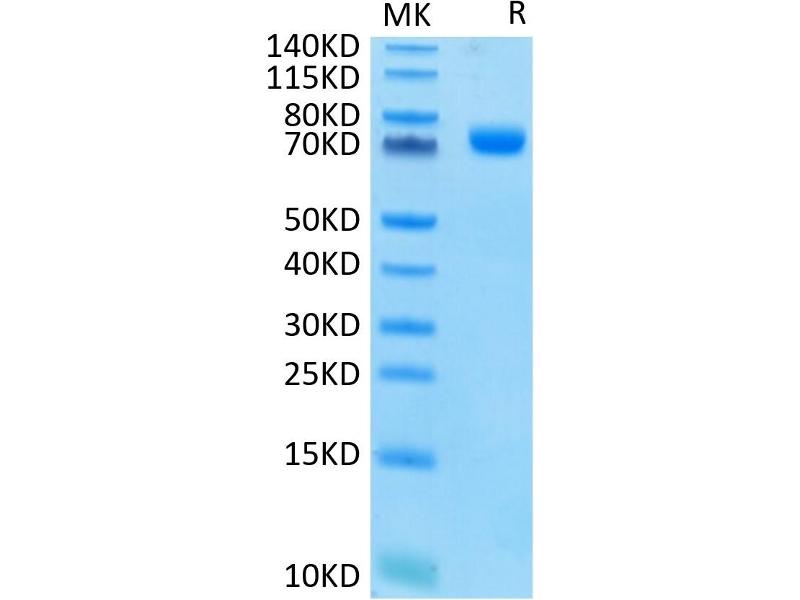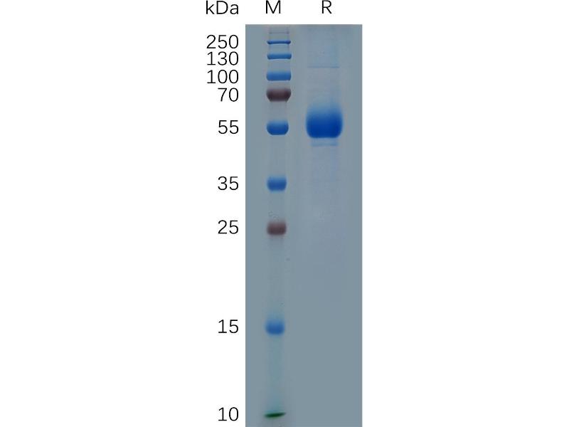 The purity of the protein is greater than 95 % as determined by SDS-PAGE and Coomassie blue staining.