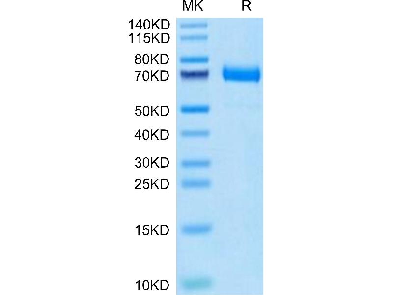 The purity of the protein is greater than 95 % as determined by SDS-PAGE and Coomassie blue staining.