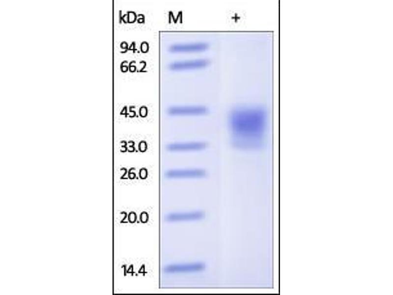 The purity of the protein is greater than 95 % as determined by SDS-PAGE and Coomassie blue staining.