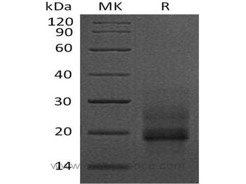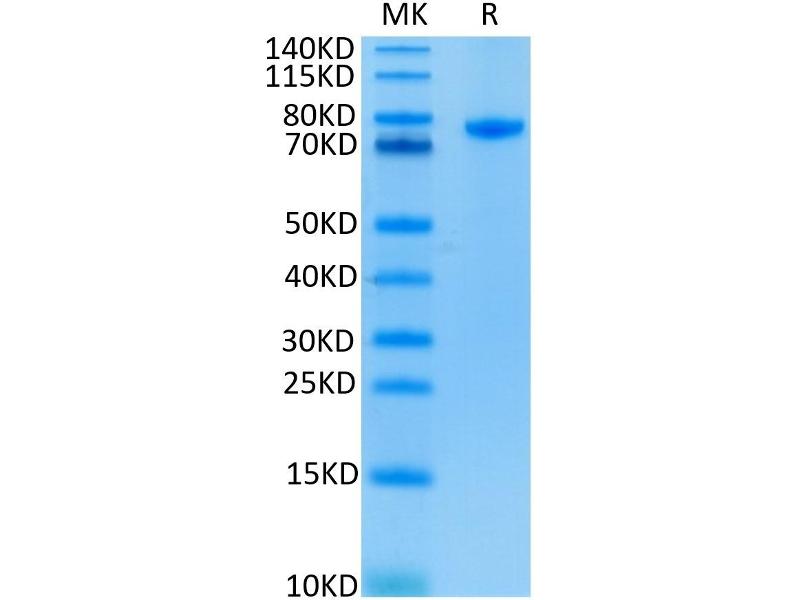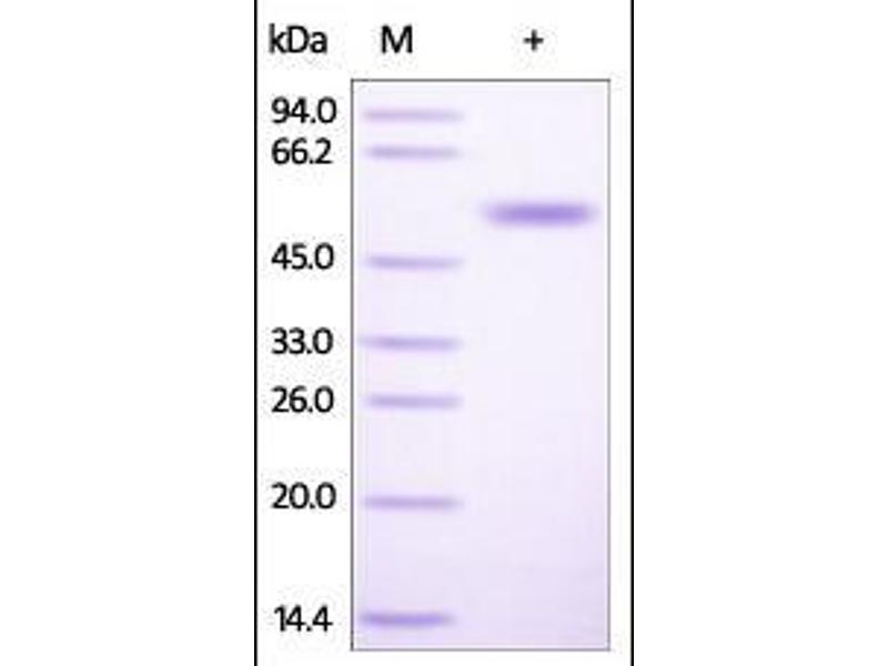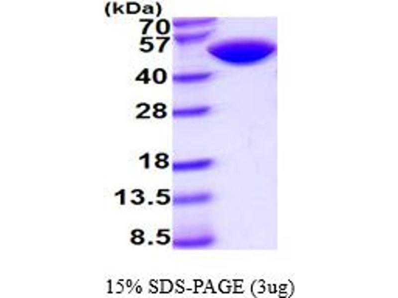 The purity of the protein is greater than 85 % as determined by SDS-PAGE and Coomassie blue staining.