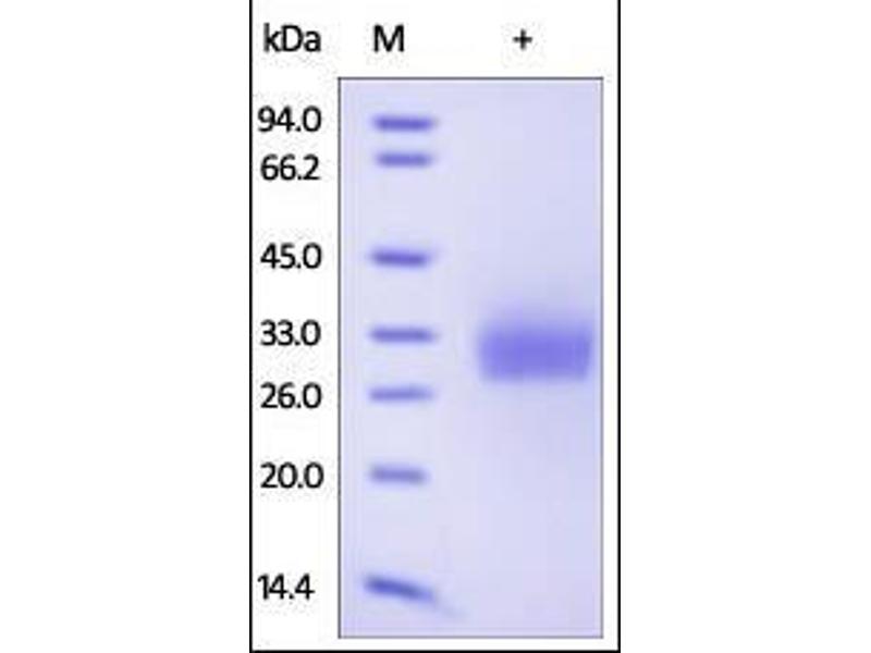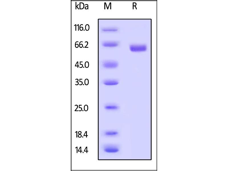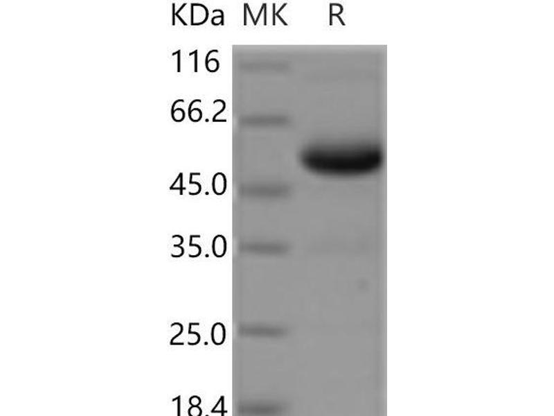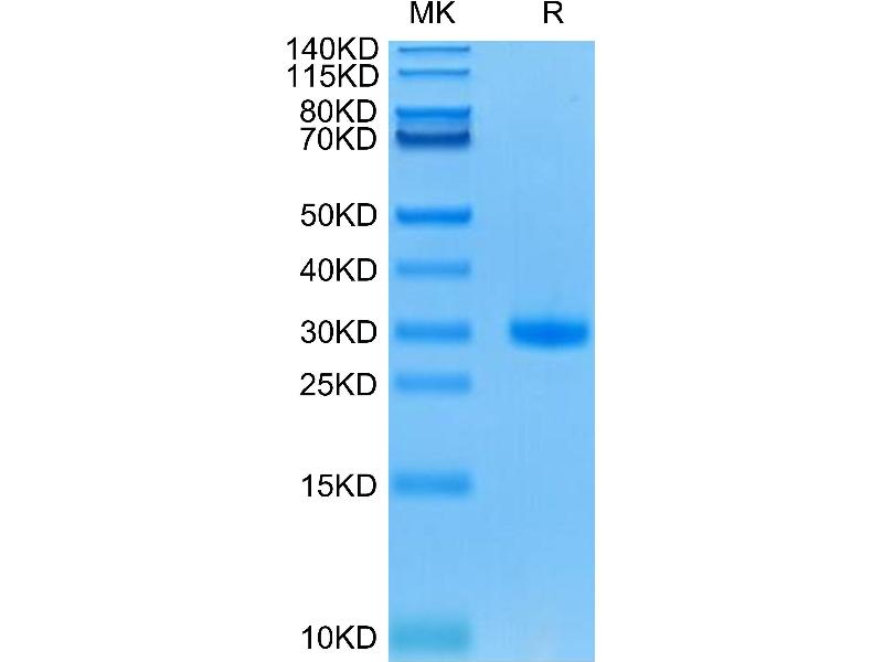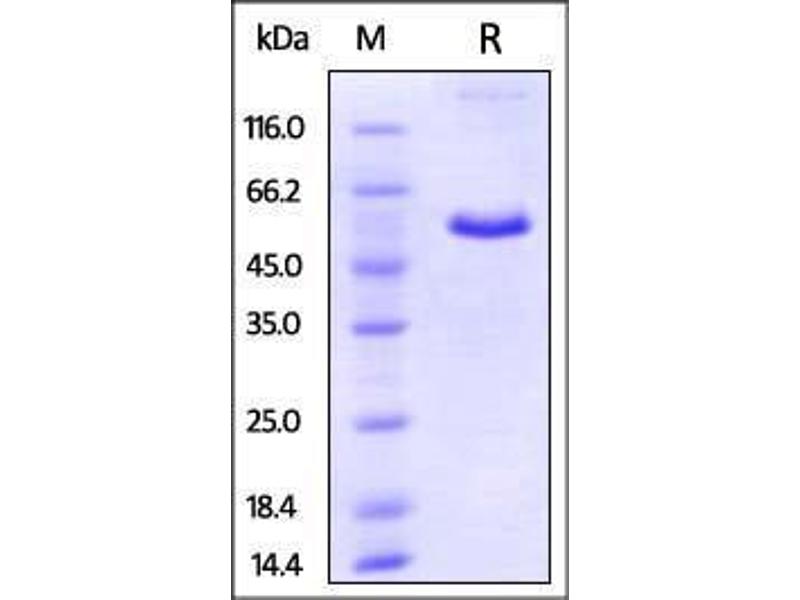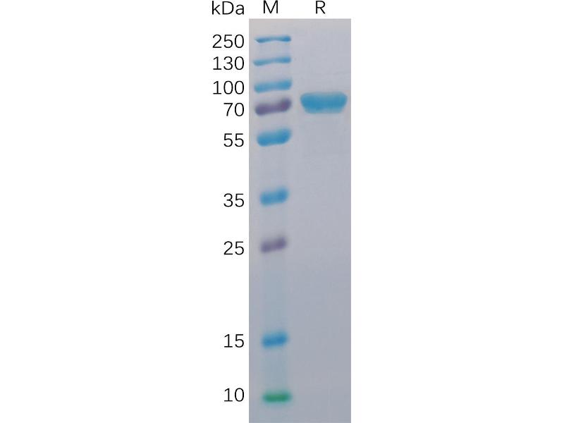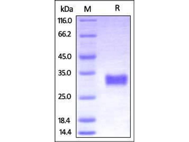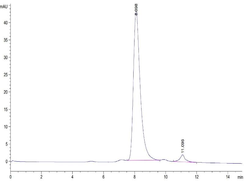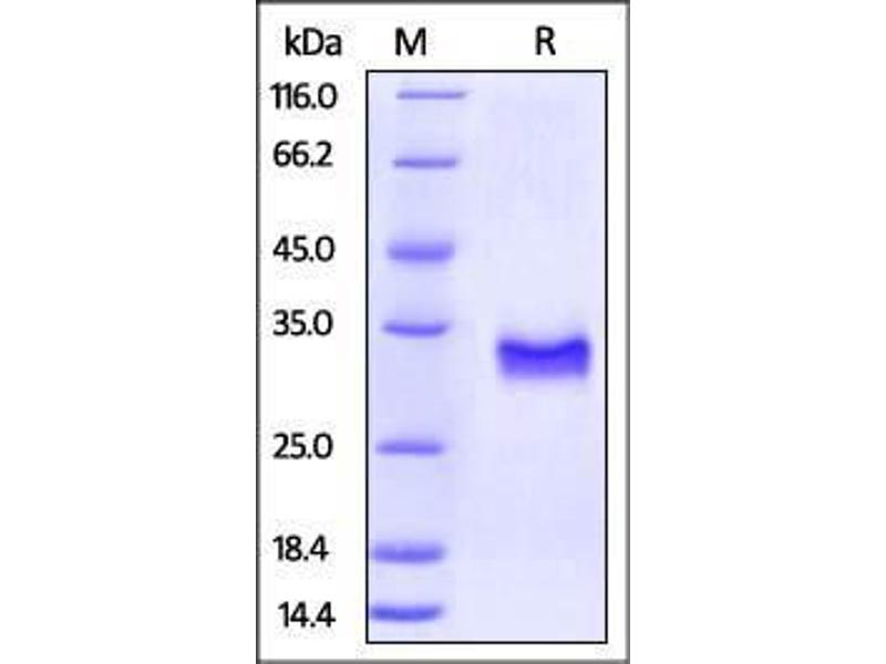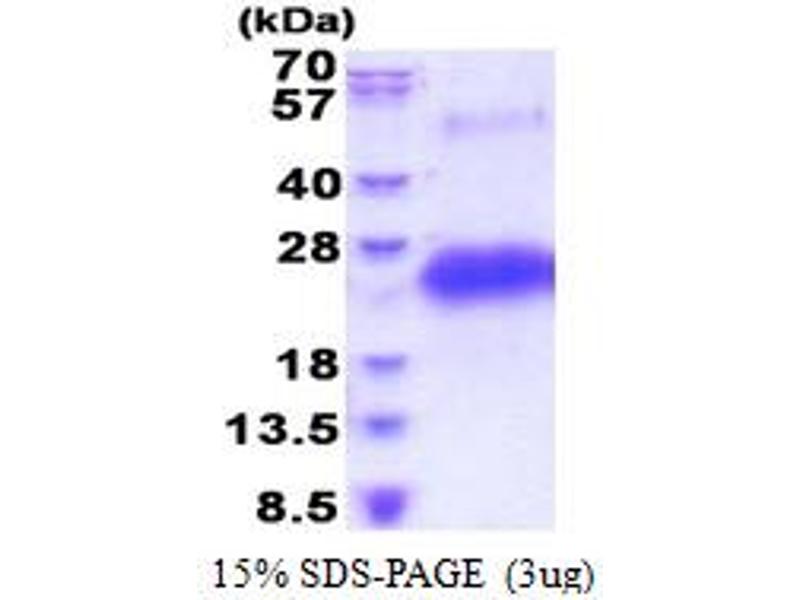 The purity of the protein is greater than 95 % as determined by SDS-PAGE and Coomassie blue staining.