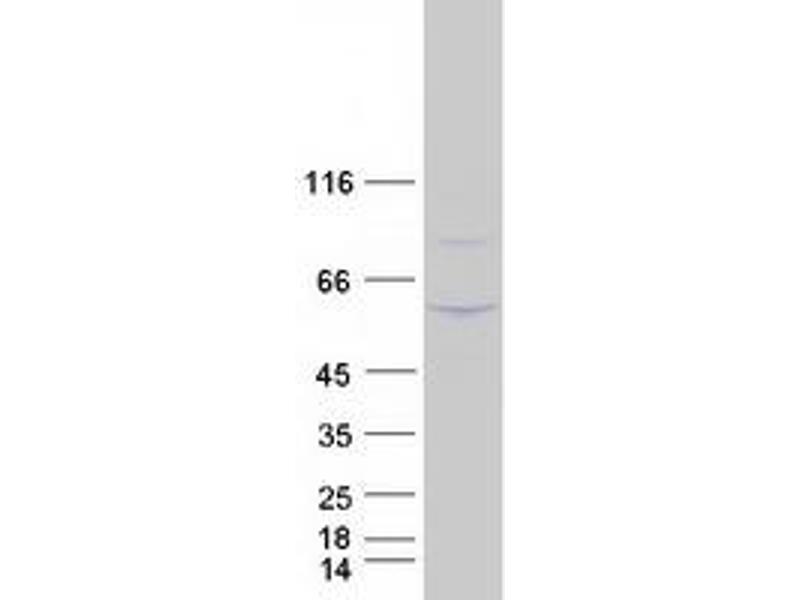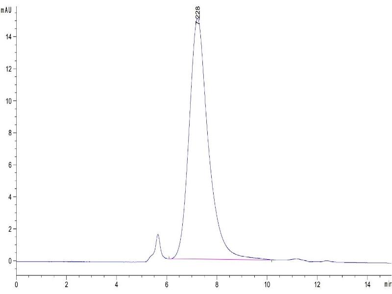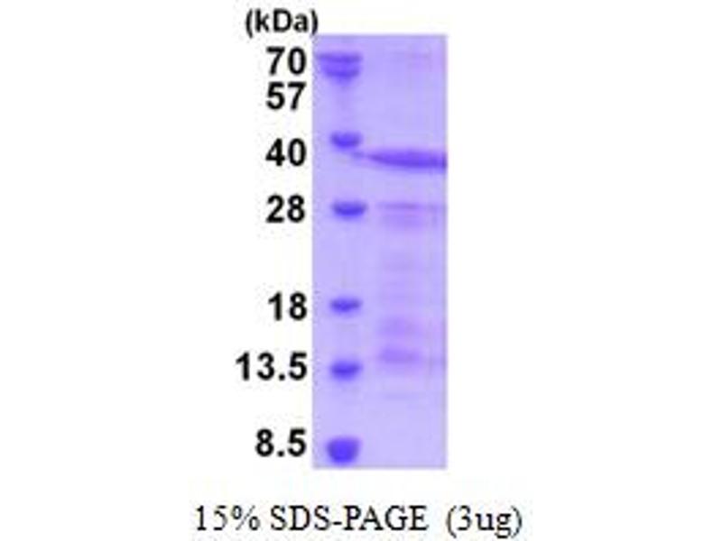 The purity of the protein is greater than 95 % as determined by SDS-PAGE and Coomassie blue staining.