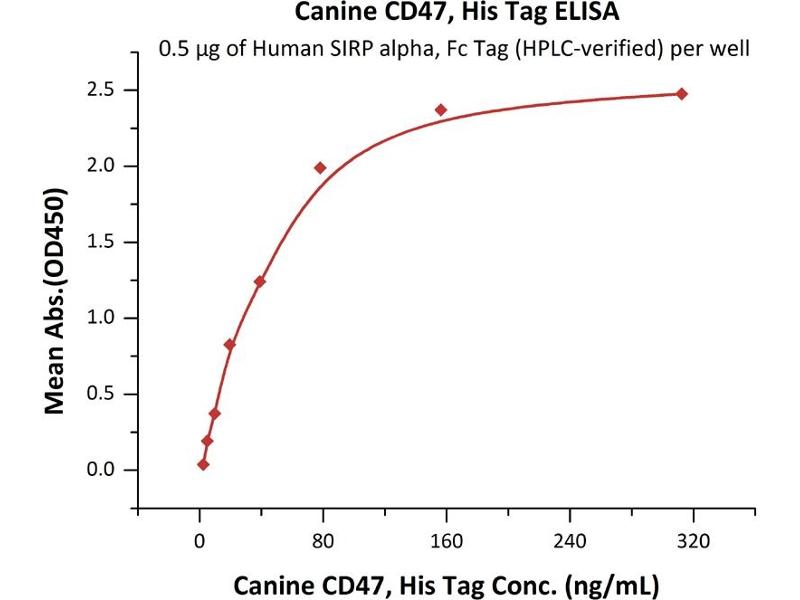 CD47 Origin: Dog Host: HEK-293 Cells Recombinant >90 % as determined by reduced SDS-PAGE. Active