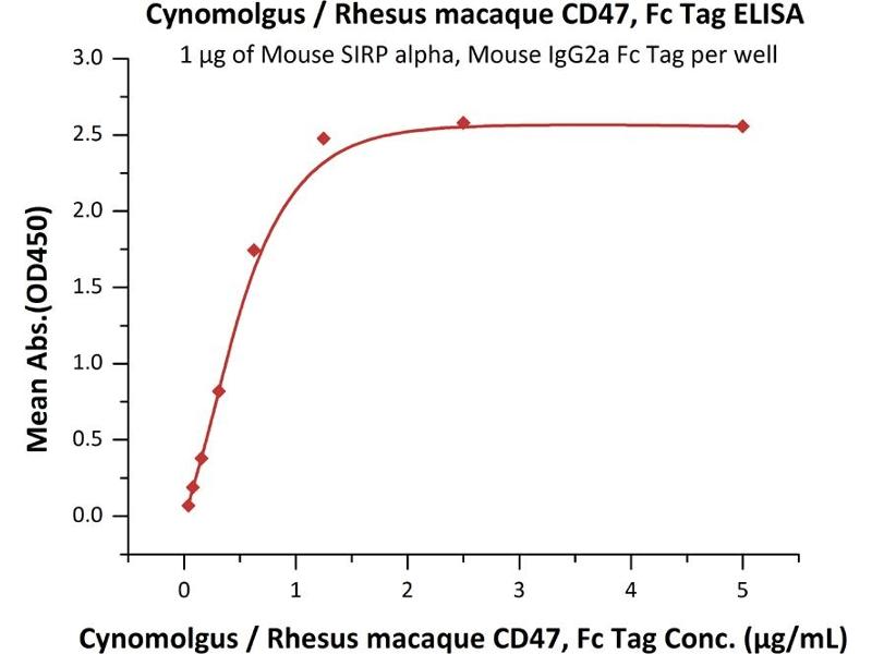 CD47 Origin: Rhesus Monkey, Cynomolgus Host: HEK-293 Cells Recombinant >95 % as determined by SDS-PAGE. Func Active
