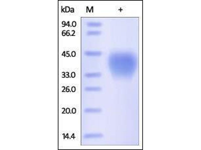 The purity of the protein is greater than 95 % as determined by SDS-PAGE and Coomassie blue staining.
