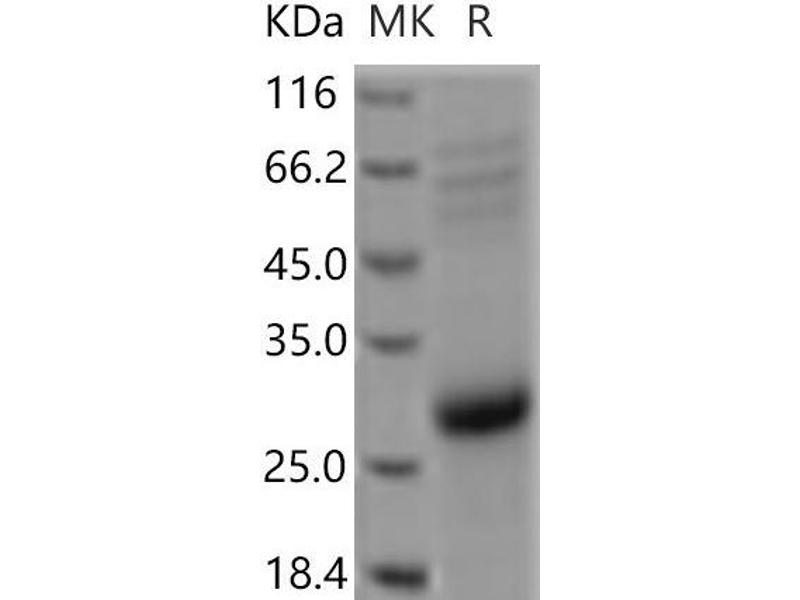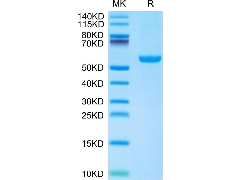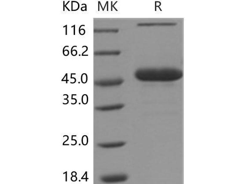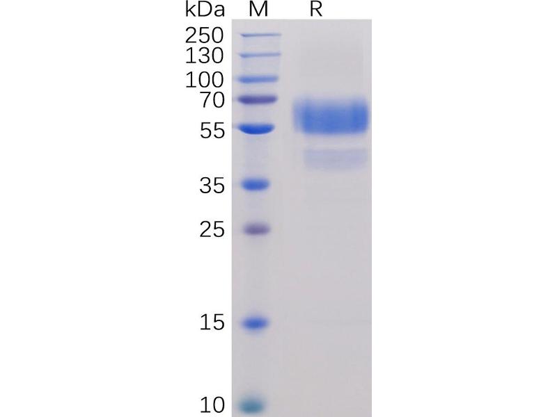 The purity of the protein is greater than 95 % as determined by SDS-PAGE and Coomassie blue staining.