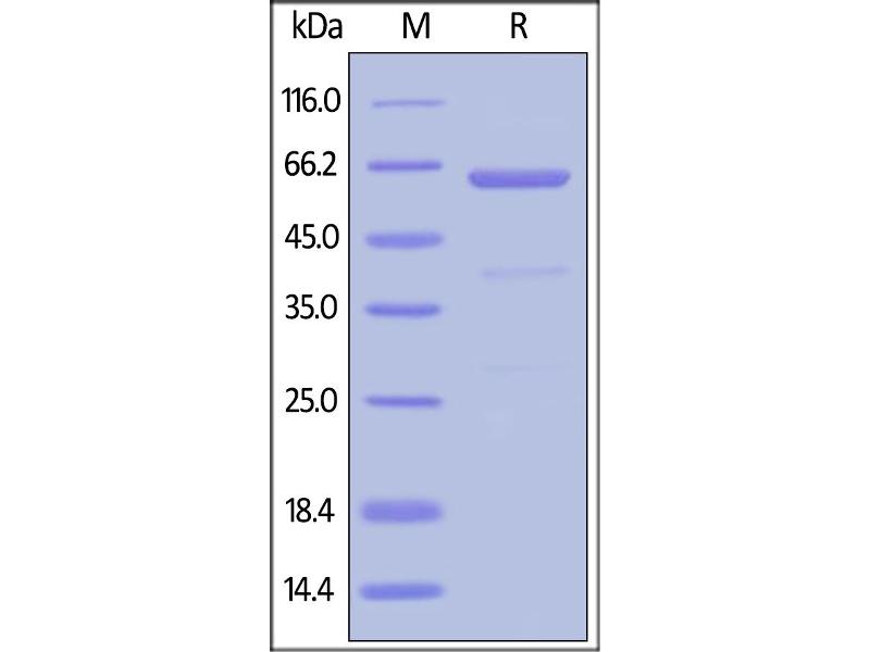 The purity of the protein is greater than 95 % as determined by SDS-PAGE and Coomassie blue staining.