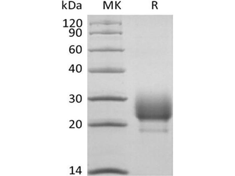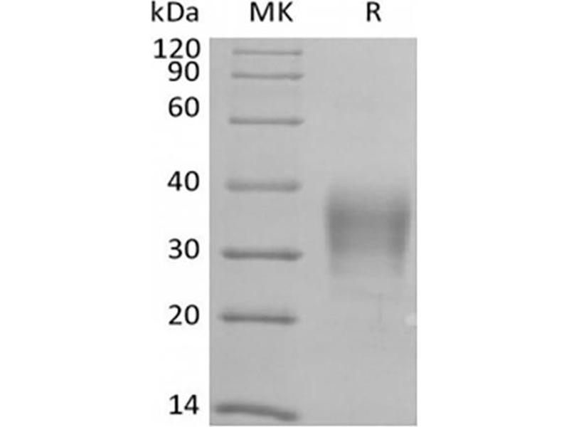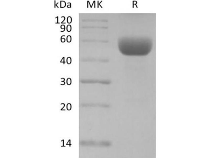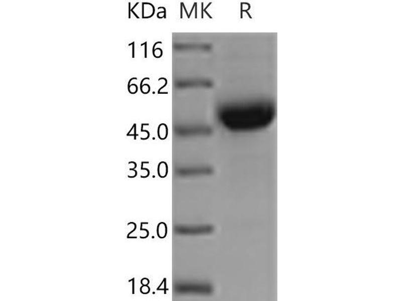 The purity of the protein is greater than 95 % as determined by SDS-PAGE and Coomassie blue staining.