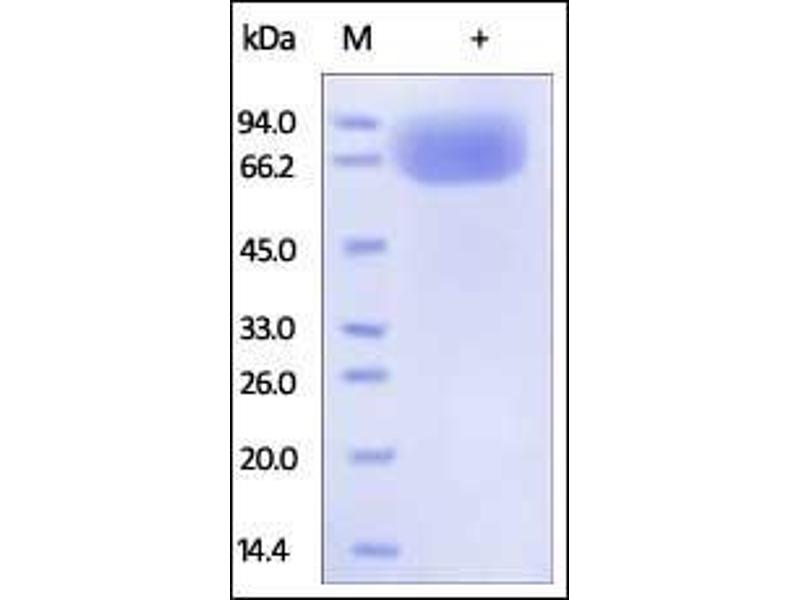 The purity of the protein is greater than 95 % as determined by SDS-PAGE and Coomassie blue staining.