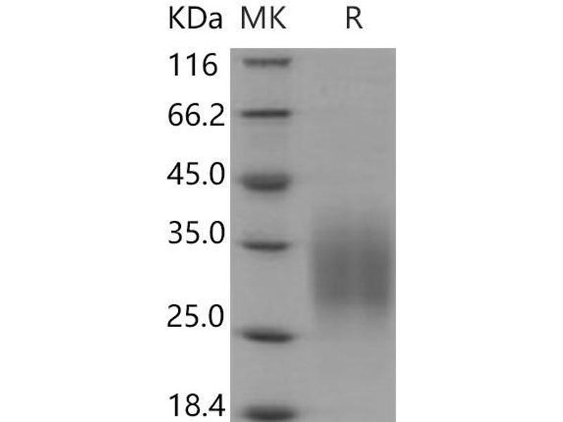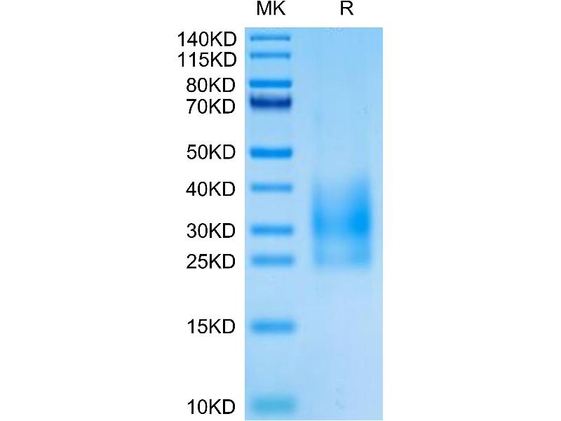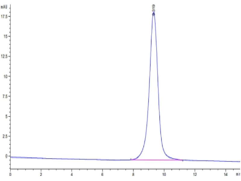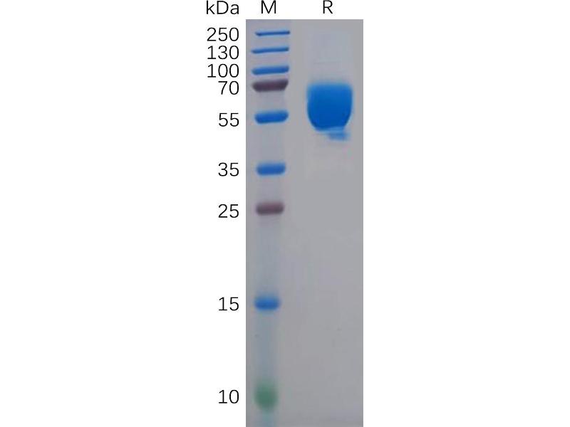 The purity of the protein is greater than 90 % as determined by SDS-PAGE and Coomassie blue staining.