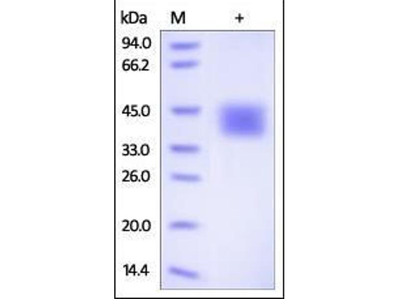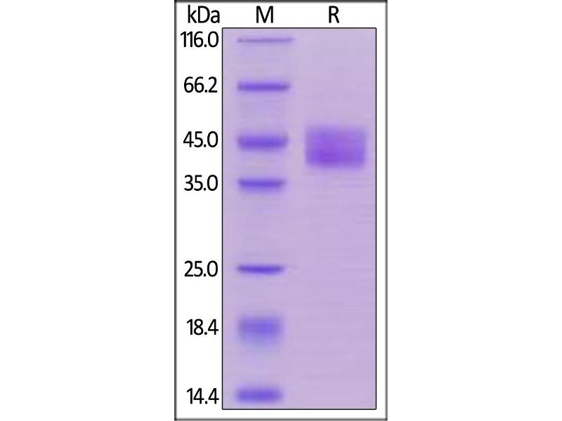 The purity of the protein is greater than 95 % as determined by SDS-PAGE and Coomassie blue staining.