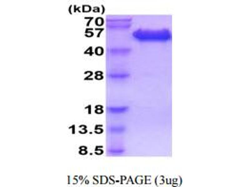 The purity of the protein is greater than 95 % as determined by SDS-PAGE and Coomassie blue staining.