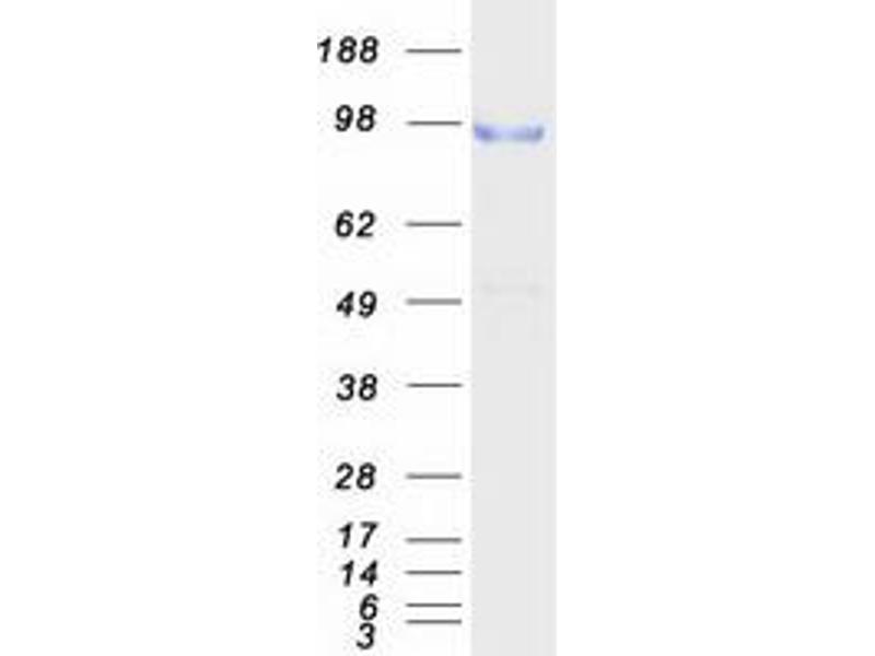 The purity of the protein is greater than 95 % as determined by SDS-PAGE and Coomassie blue staining.