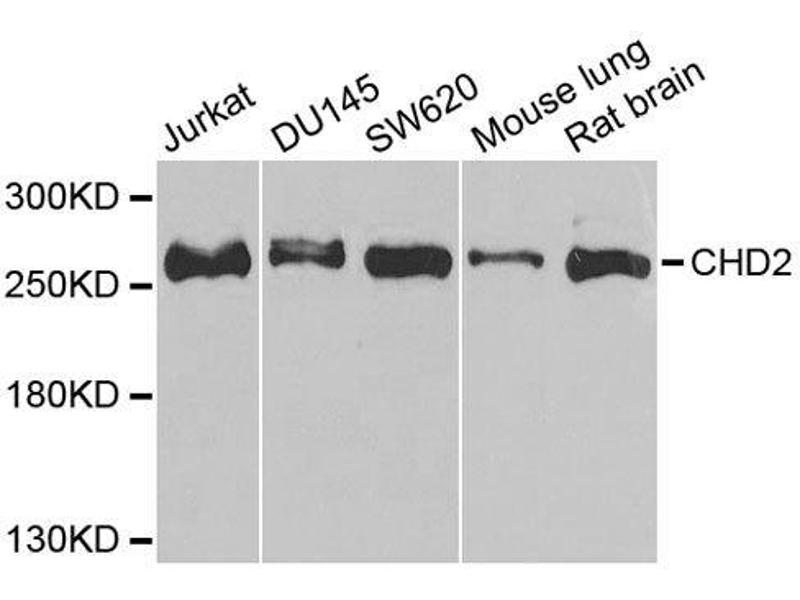 Explore reliable CHD2 antibodies from a broad selection of renowned manufacturers. Our portfolio enables accurate CHD2 detection across multiple species, including Human, Mouse, Rat, Monkey, Cow, Dog, Horse, Pig, Bat, Guinea Pig, Hamster, Rabbit, Zebrafish (Danio rerio), and supports diverse research applications such as WB, ELISA, IF, IHC, FACS.