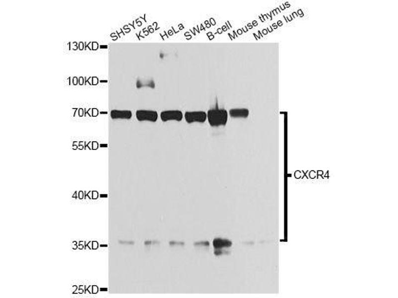 Explore reliable CXCR4 antibodies from a broad selection of renowned manufacturers. Our portfolio enables accurate CXCR4 detection across multiple species, including Human, Mouse, Rat, Rabbit, Cow, Monkey, Pig, Dog, Hamster, Horse, Bat, Non-Human Primate, Sheep, Zebrafish (Danio rerio), Chicken, Baboon, Cat, Chimpanzee, Xenopus laevis, and supports diverse research applications such as WB, FACS, ELISA, IHC, IF.