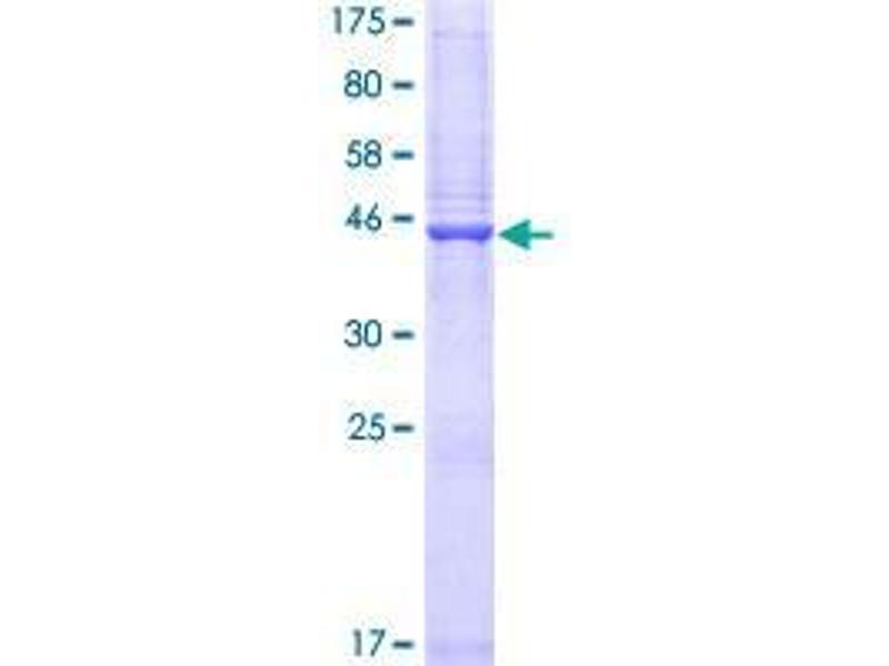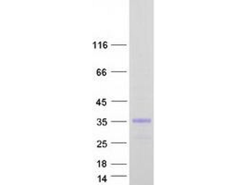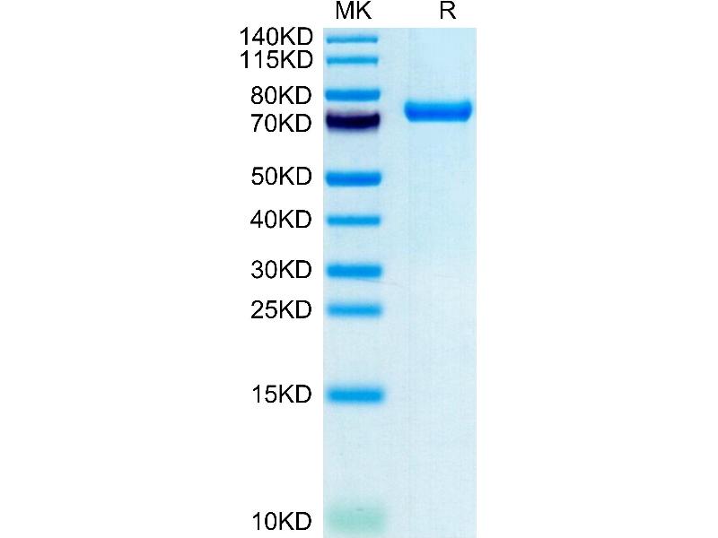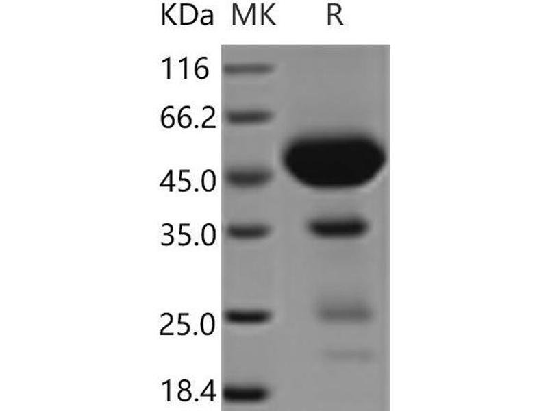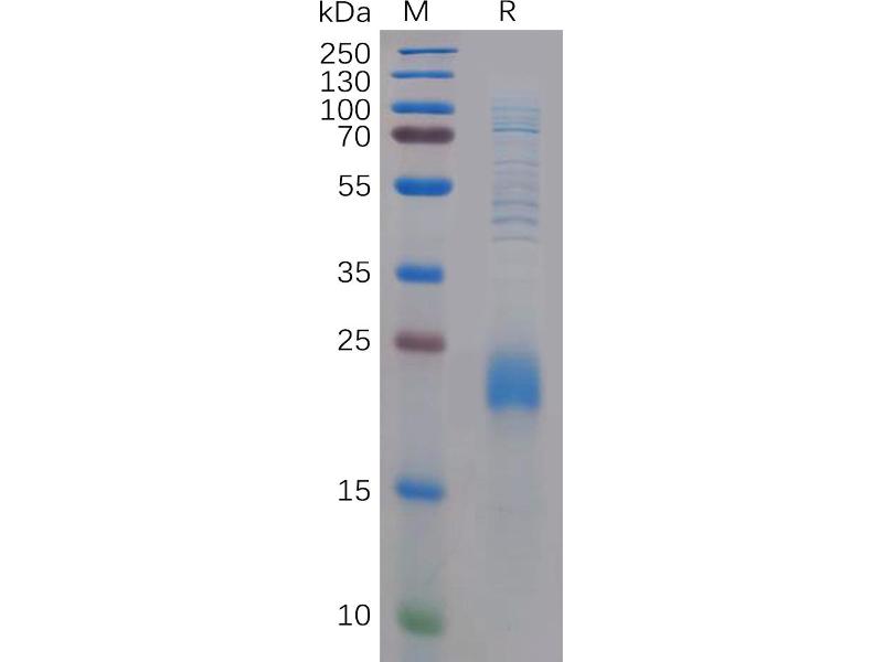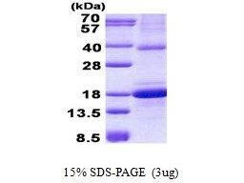 The purity of the protein is greater than 90 % as determined by SDS-PAGE and Coomassie blue staining.