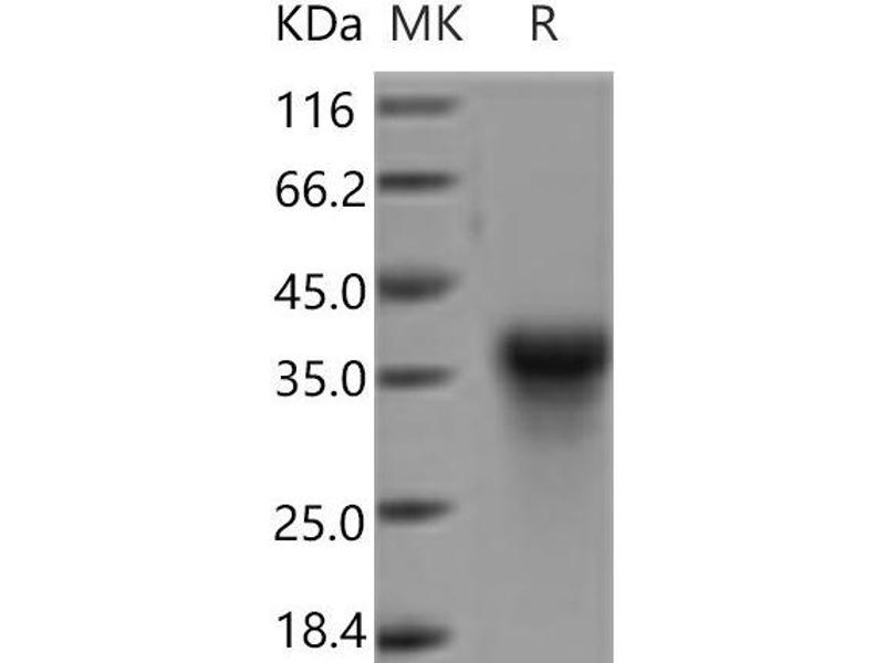 The purity of the protein is greater than 95 % as determined by SDS-PAGE and Coomassie blue staining.