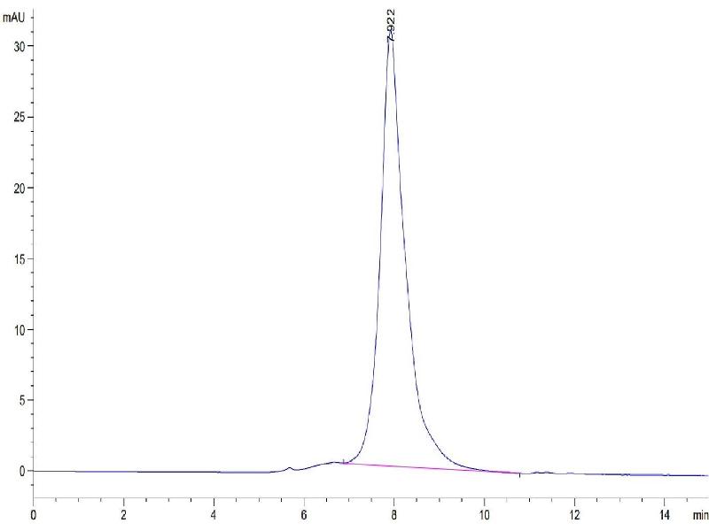 The purity of the protein is greater than 95 % as determined by SDS-PAGE and Coomassie blue staining.