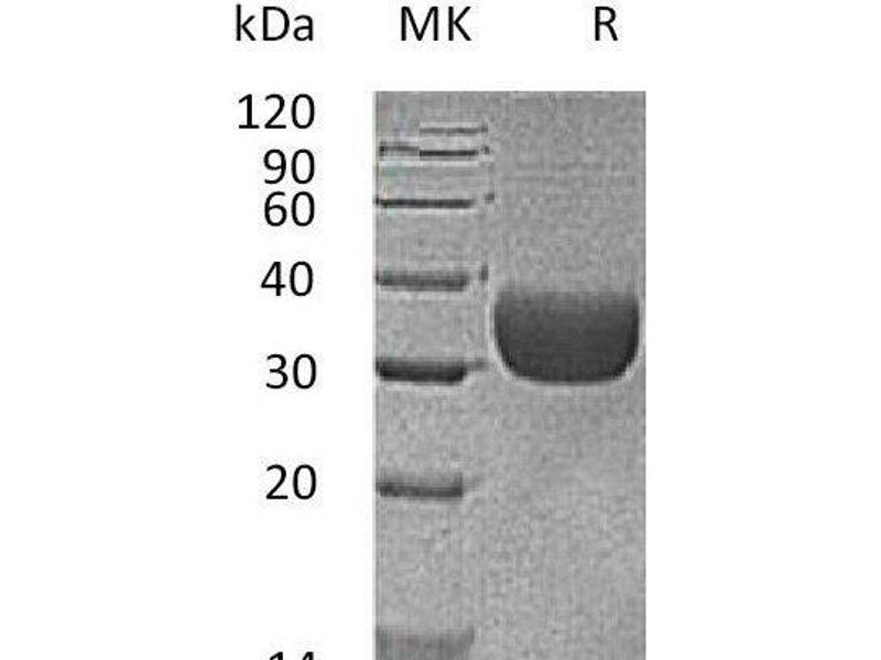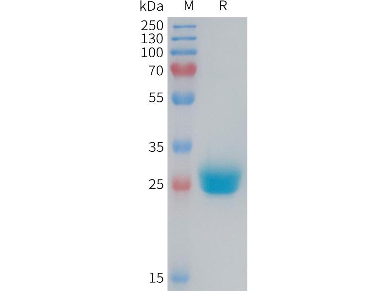 The purity of the protein is greater than 95 % as determined by SDS-PAGE and Coomassie blue staining.