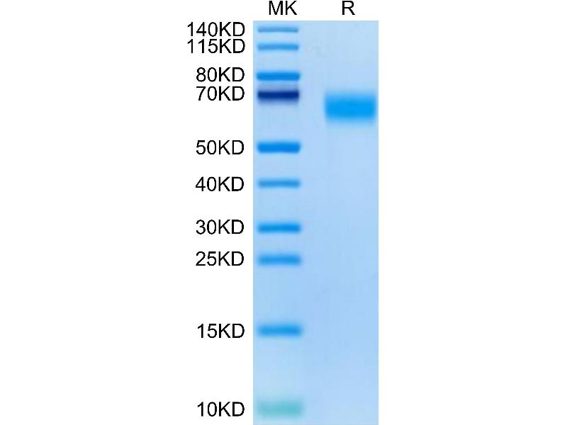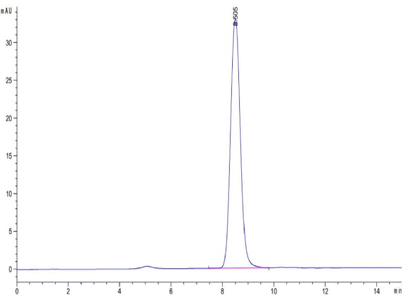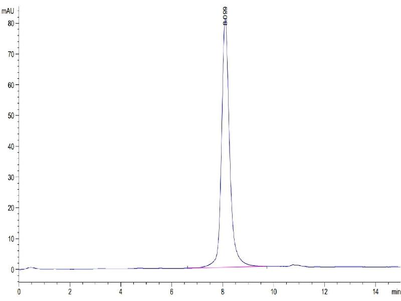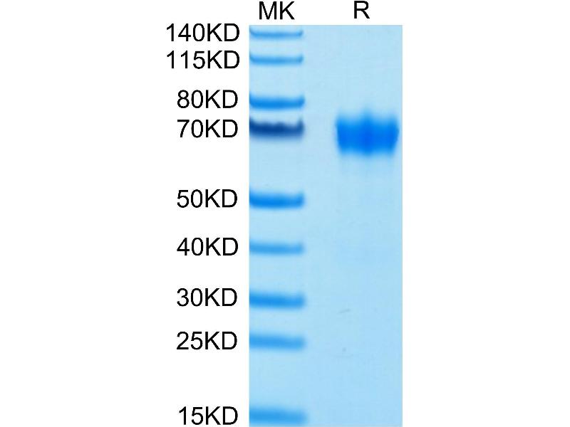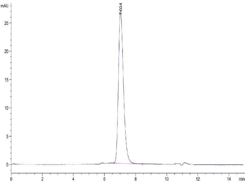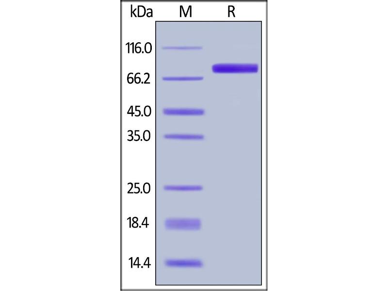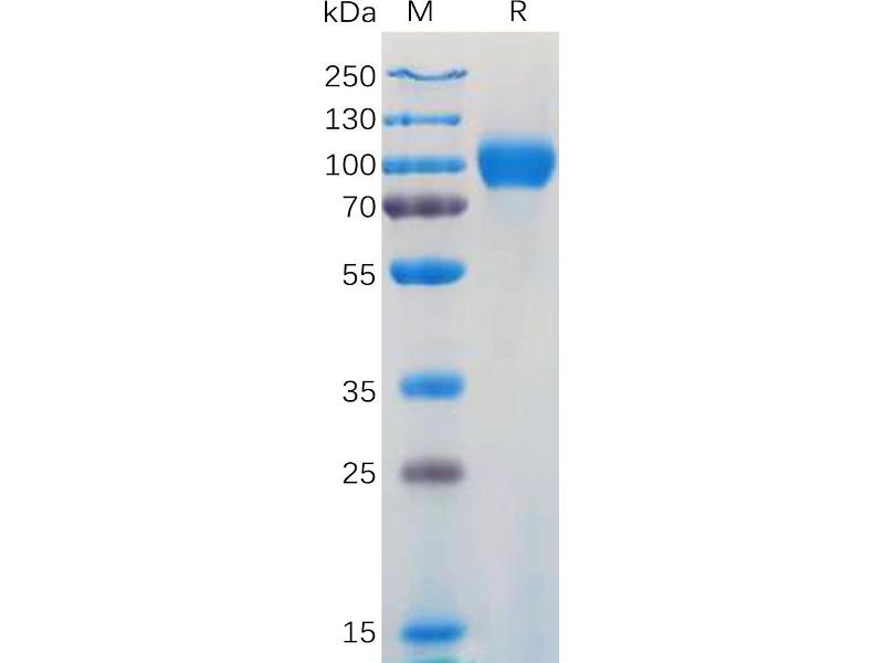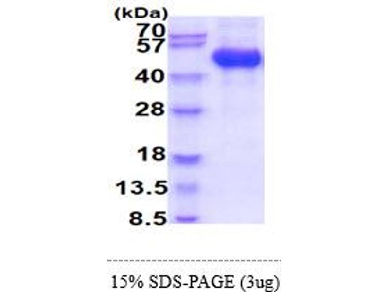 The purity of the protein is greater than 95 % as determined by SDS-PAGE and Coomassie blue staining.