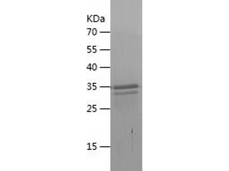 The purity of the protein is greater than 85 % as determined by SDS-PAGE and Coomassie blue staining.