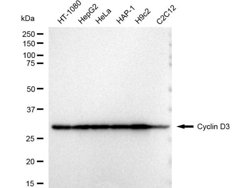 Explore reliable Cyclin D3 antibodies from a broad selection of renowned manufacturers. Our portfolio enables accurate Cyclin D3 detection across multiple species, including Human, Mouse, Rat, Rabbit, Monkey, Cow, Dog, Pig, Sheep, Bat, Chicken, Guinea Pig, Horse, and supports diverse research applications such as WB, ELISA, FACS, IF (cc), IF (p).