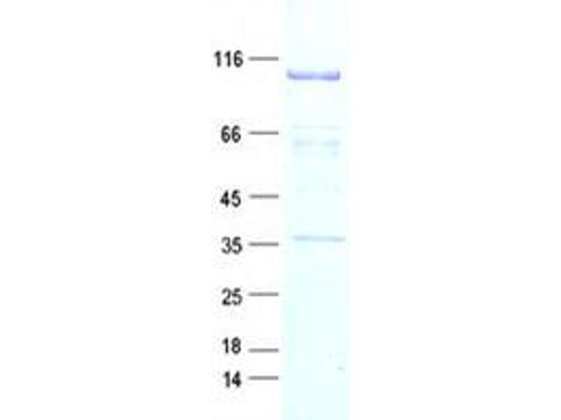 The purity of the protein is greater than 85 % as determined by SDS-PAGE and Coomassie blue staining.