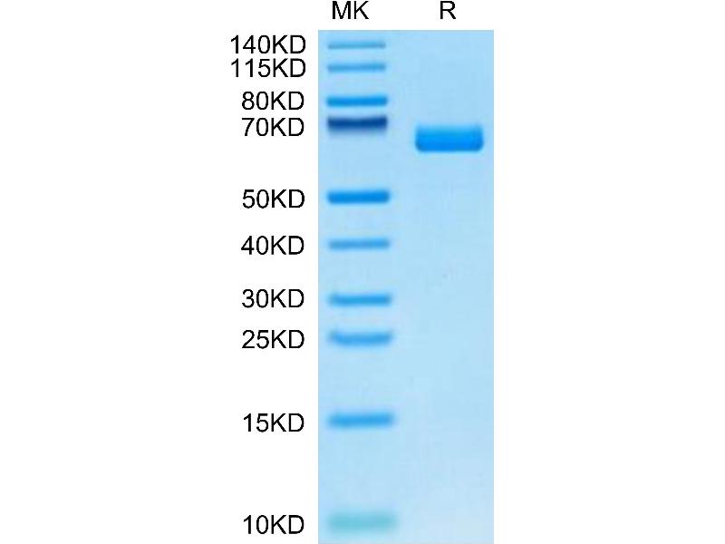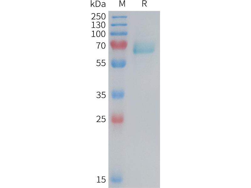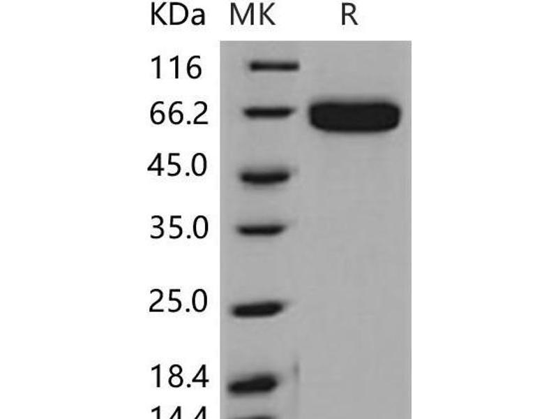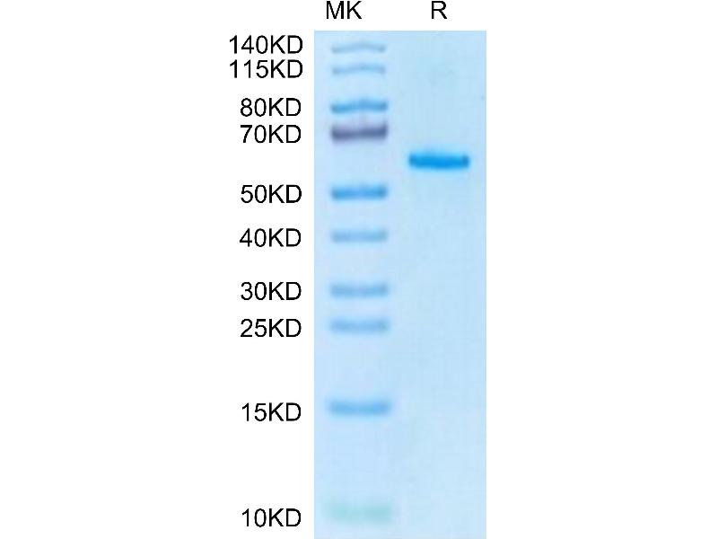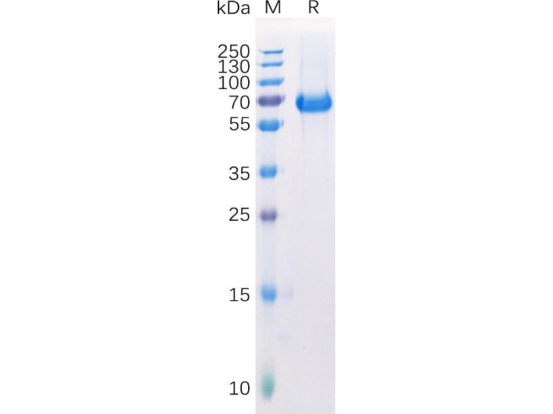 The purity of the protein is greater than 95 % as determined by SDS-PAGE and Coomassie blue staining.