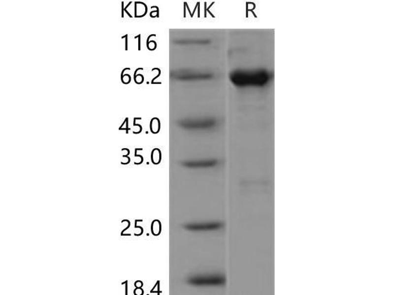 The purity of the protein is greater than 95 % as determined by SDS-PAGE and Coomassie blue staining.