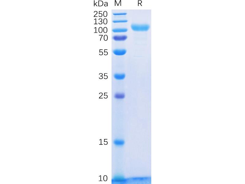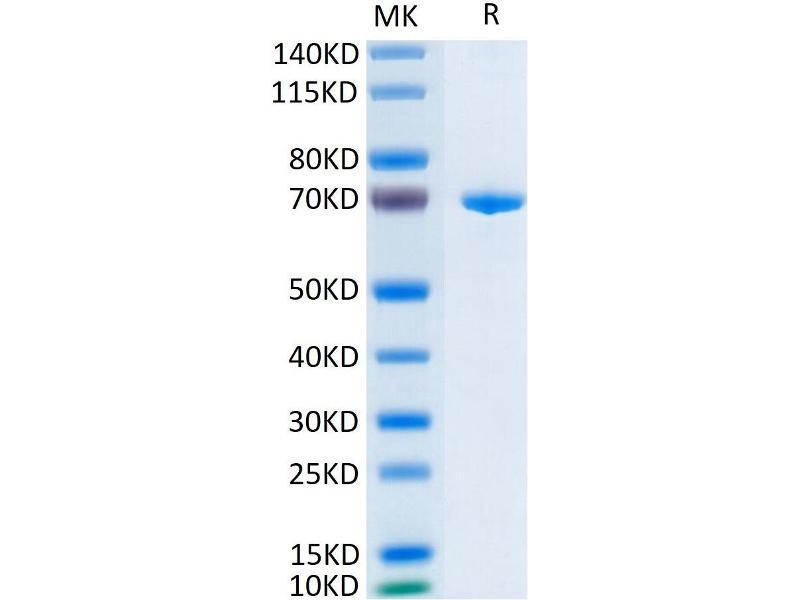 The purity of the protein is greater than 95 % as determined by SDS-PAGE and Coomassie blue staining.