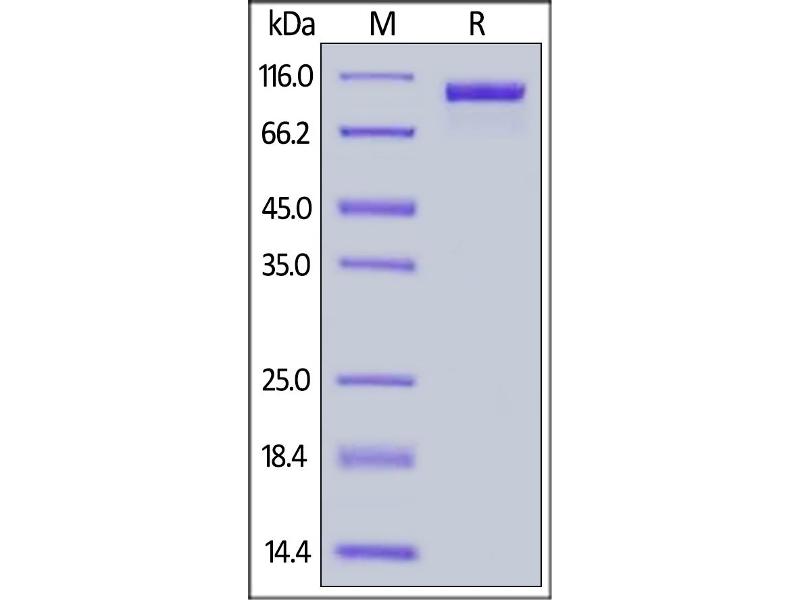 The purity of the protein is greater than 95 % as determined by SDS-PAGE and Coomassie blue staining.