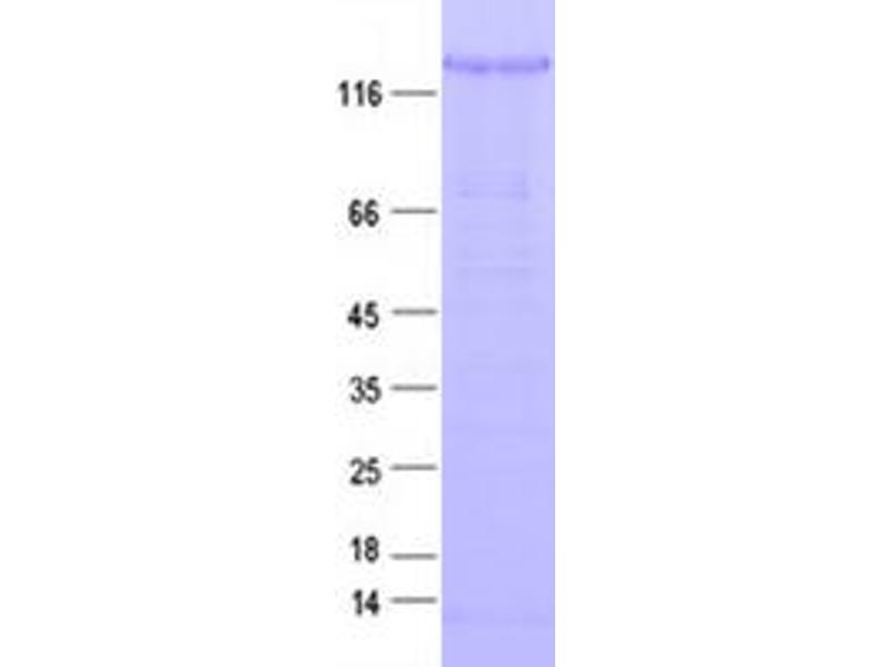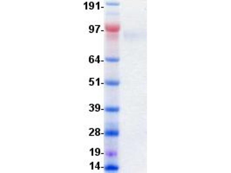 The purity of the protein is greater than 85 % as determined by SDS-PAGE and Coomassie blue staining.