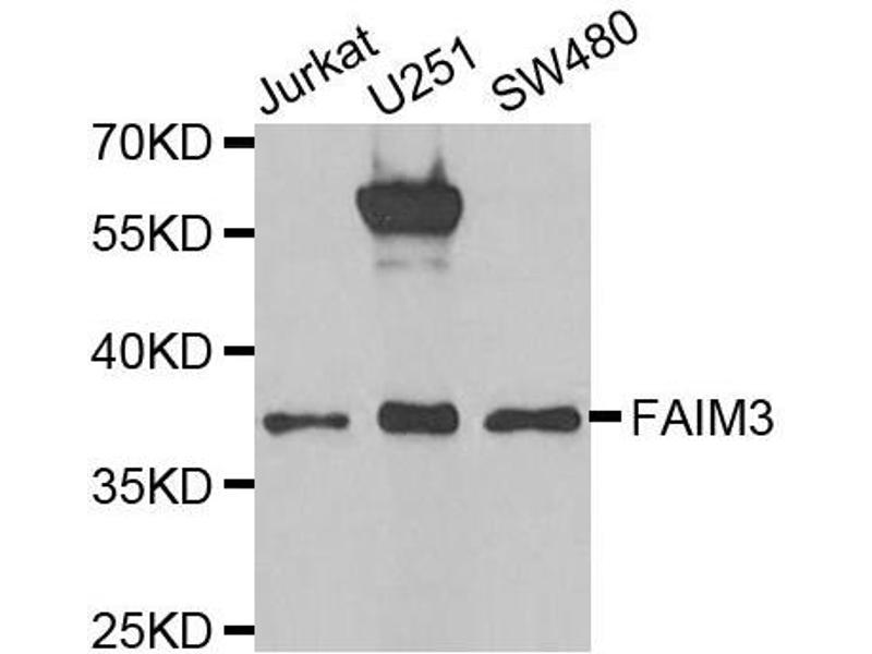 Explore reliable FAIM3 antibodies from a broad selection of renowned manufacturers. Our portfolio enables accurate FAIM3 detection across multiple species, including Human, Mouse, Rat, and supports diverse research applications such as WB, IF (cc), IF (p), ELISA, IHC (p).