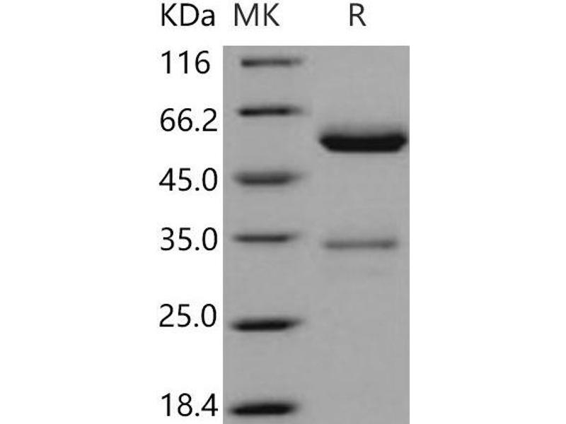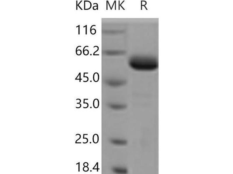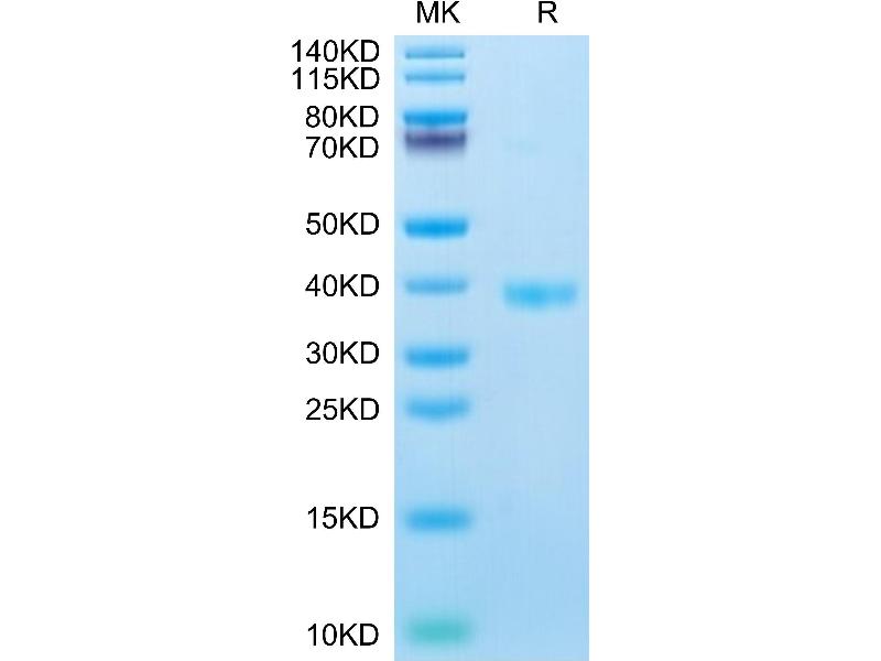 The purity of the protein is greater than 95 % as determined by SDS-PAGE and Coomassie blue staining.