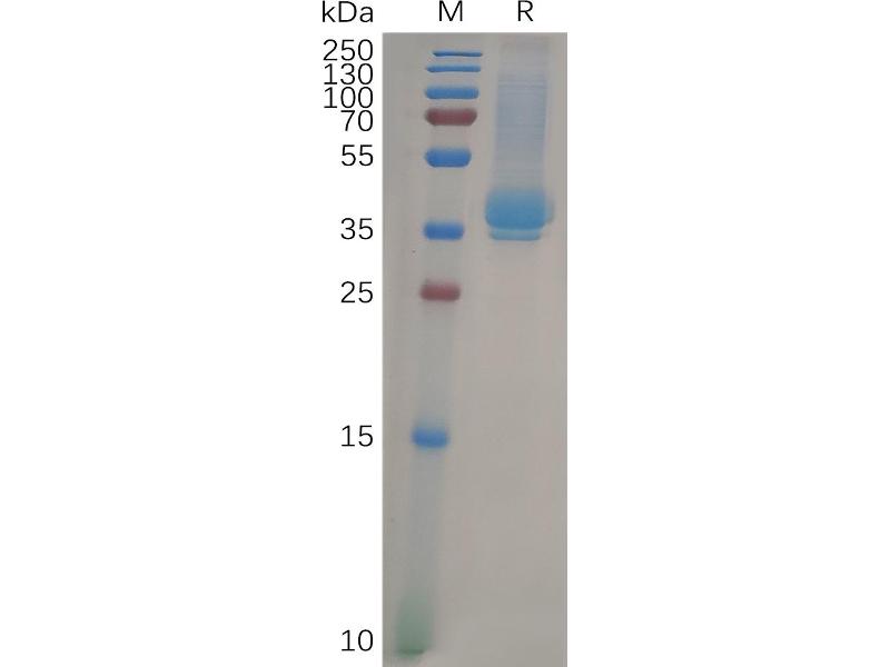 The purity of the protein is greater than 85 % as determined by SDS-PAGE and Coomassie blue staining.